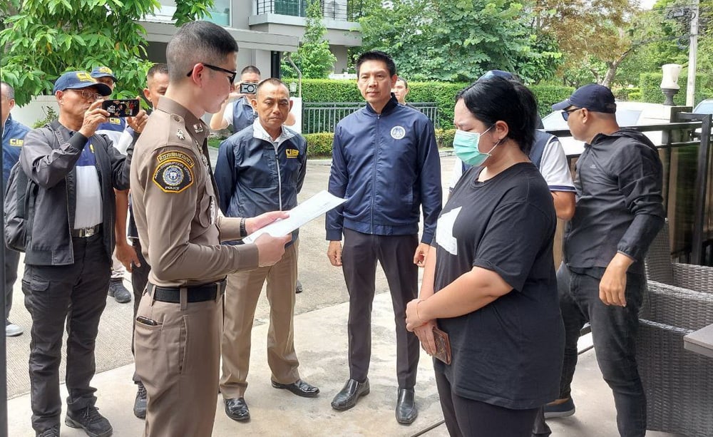 15 กรกฎาคม 2568 -พล.ต.ต.จรูญเกียรติ ปานแก้ว รอง ผบช.ก. พร้อมด้วย พล.ต.ต.ประสงค์ เฉลิมพันธ์ ผบก.ปปป. พ.ต.ท.สิริพงษ์ ศรีตุลา รักษาราชการแทนรองเลขาธิการคณะกรรมการ ป.ป.ท. นำกำลังเข้าจับกุม น.ส.วิลาวัลย์ เอมสวัสดิ์ หรือ สีกากอล์ฟ อายุ 35 ปี ตามหมายจับศาลอาญาคดีทุจริตประพฤติมิชอบกลางในข้อหา “สนับสนุนเจ้าพนักงานปฏิบัติหน้าที่มิชอบ ม.147 ,ร่วมกันฟอกเงิน สมคบกันฟอกเงิน ,รับของโจร ภายในบ้านพักหมู่บ้านหรู จ.นนทบุรี หลังพบเส้นทางการเงินของอดีตพระเทพพัชราภรณ์ อดีตเจ้าอาวาสวัดชูจิตธรรมาราม จังหวัดพระนครศรีอยุธยา โอนเงินให้ 3.8 แสนบาท ซึ่งเป็นเงินจากบัญชีของวัด