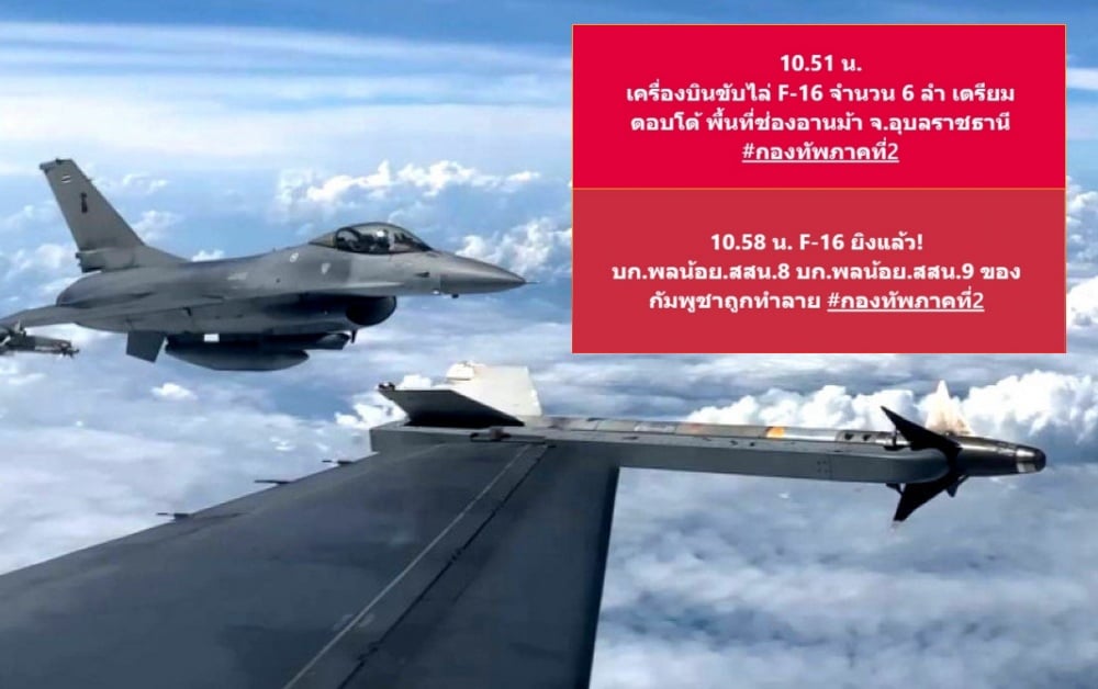 เวลา 10.58 น. F-16 ยิงแล้ว! บก.พลน้อย.สสน.8 บก.พลน้อย.สสน.9 ของกัมพูชาถูกทำลาย