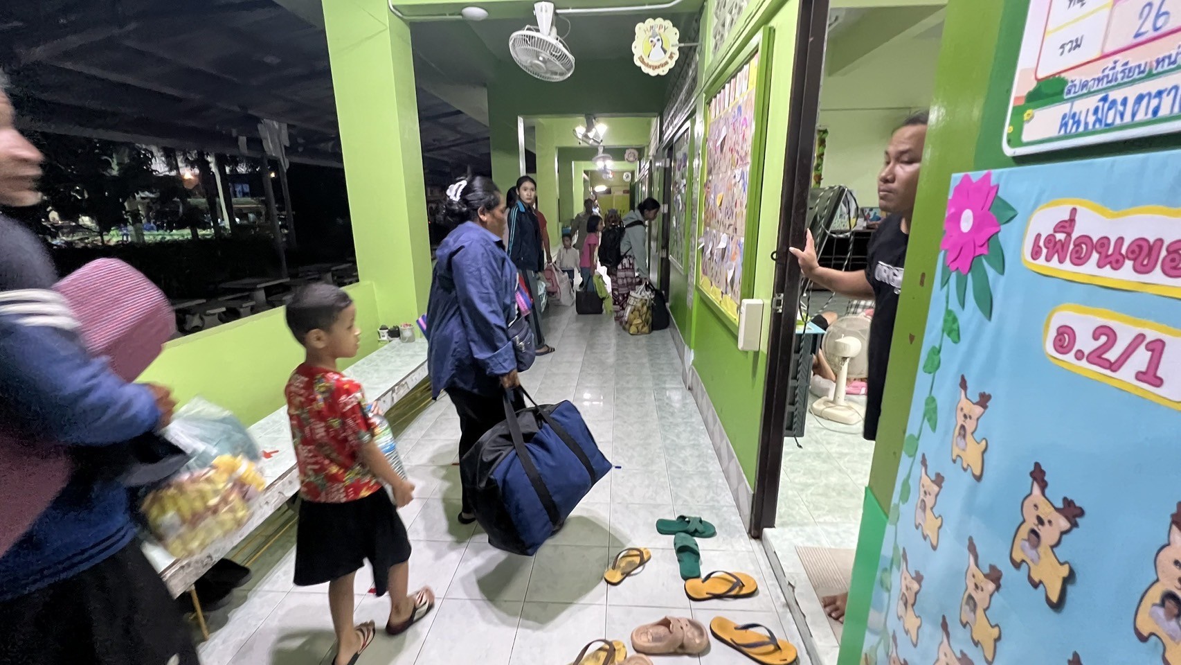 เวลา 23.30 น. นายณัฐพงษ์ สงวนจิตร ผู้ว่าราชการจังหวัดตราด พร้อมคณะทำงาน เดินทางตรวจเยี่ยมศูนย์พักพิง ให้กำลังใจเจ้าหน้าที่และประชาชนในพื้นที่พักพิง