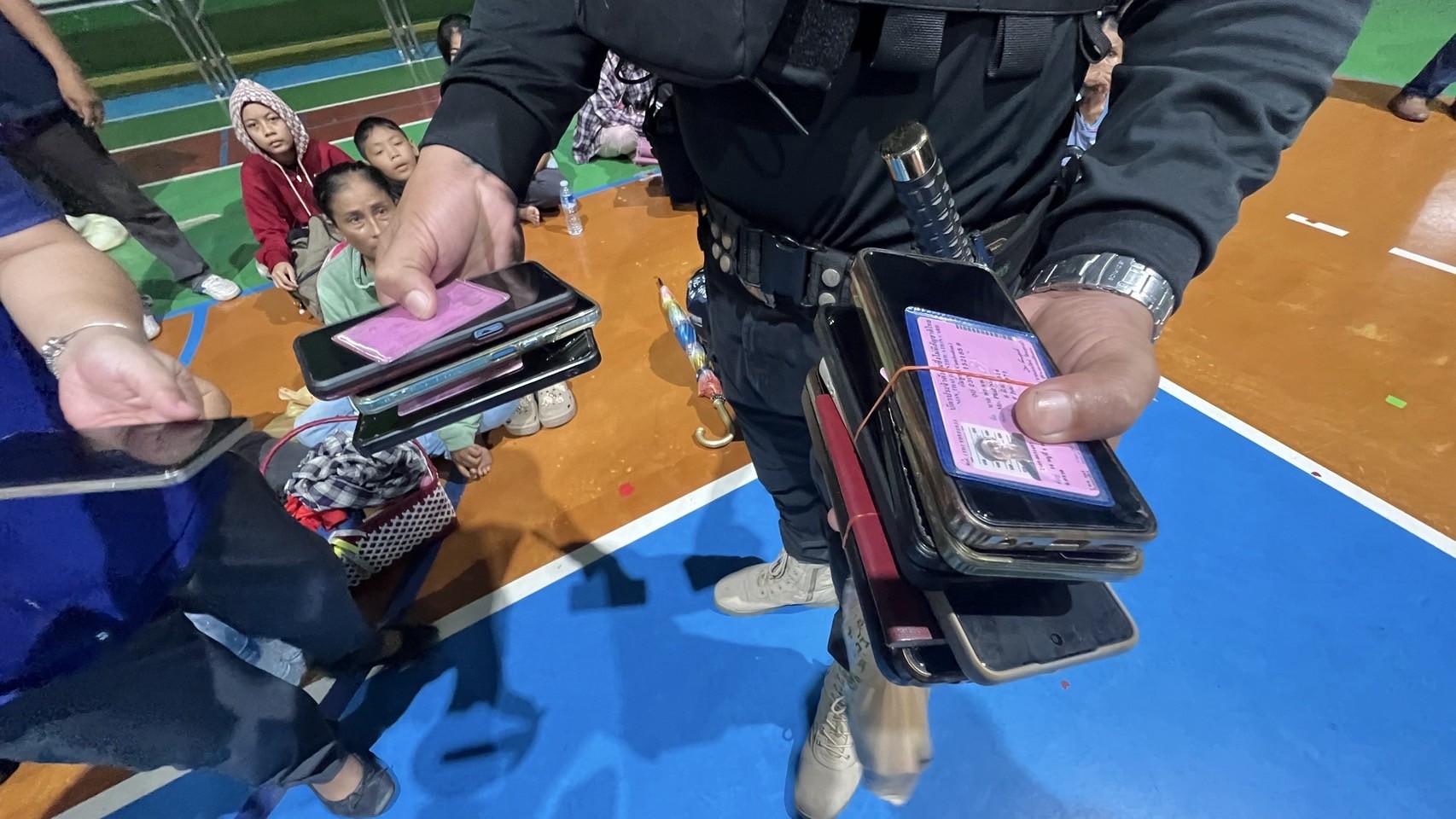ที่ ศูนย์พักพิงเทศบาลตำบลหนองเสม็ด ซึ่งรับผู้อพยพจากตำบลแหลมกลัด พบว่ามีทั้งประชาชนชาวไทยและแรงงานกัมพูชาเข้าพักอาศัยร่วมกัน เจ้าหน้าที่ได้ ยึดโทรศัพท์มือถือของแรงงานกัมพูชาทั้งหมด เพื่อความปลอดภัย โดยไม่มีการสื่อสารไปยังภายนอก และได้แยกโซนการพักอย่างชัดเจน