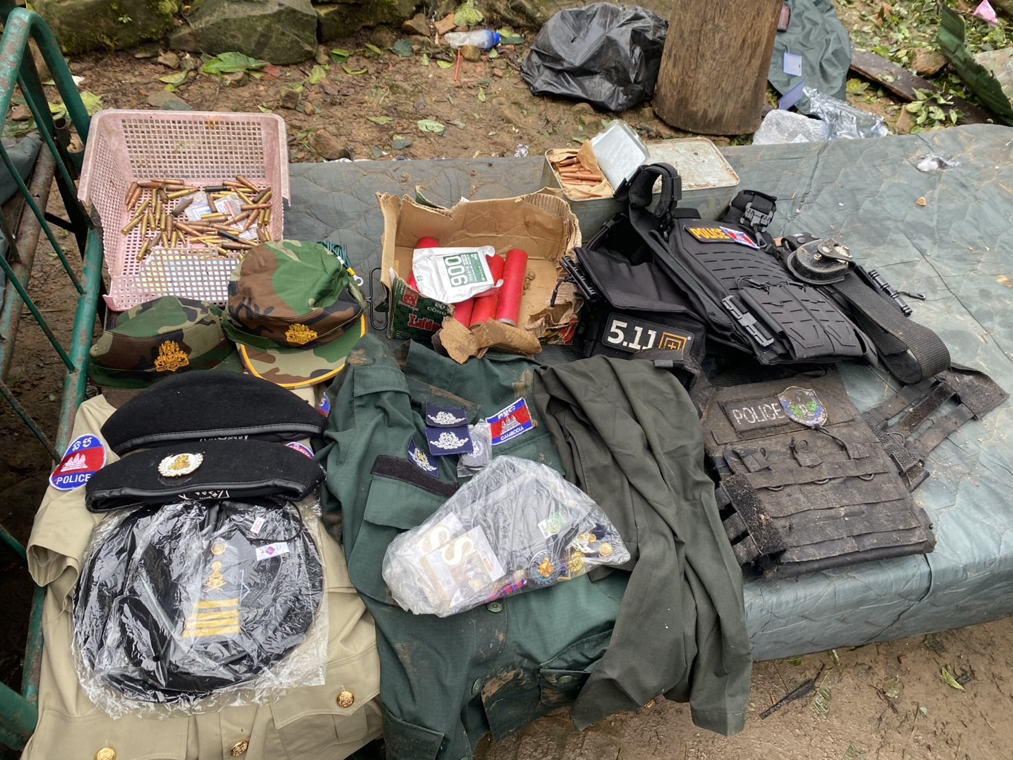 เปิดภาพคลังอาวุธ "ทหารเขมร" แตกพ่ายบน "ภูมะเขือ" สมรภูมิเขาพระวิหาร ทหารไทยเข้ายึดพื้นที่ได้สำเร็จ พร้อมยึดอาวุธปืน อาวุธยุทโธปกรณ์-โดรน 11 รายการ พร้อมโทรศัพท์ 7 เครื่องใช้ถ่ายคลิปยั่วยุทหารไทย