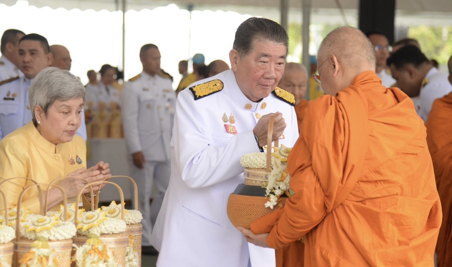 รักษาราชการแทนนายกฯ และภริยา นำผู้ร่วมพิธีร่วมตักบาตรพระสงฆ์ จำนวน 174 รูป เป็นอันเสร็จพิธี
