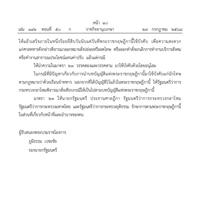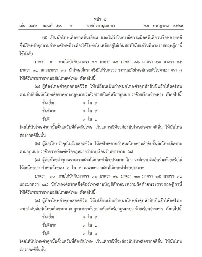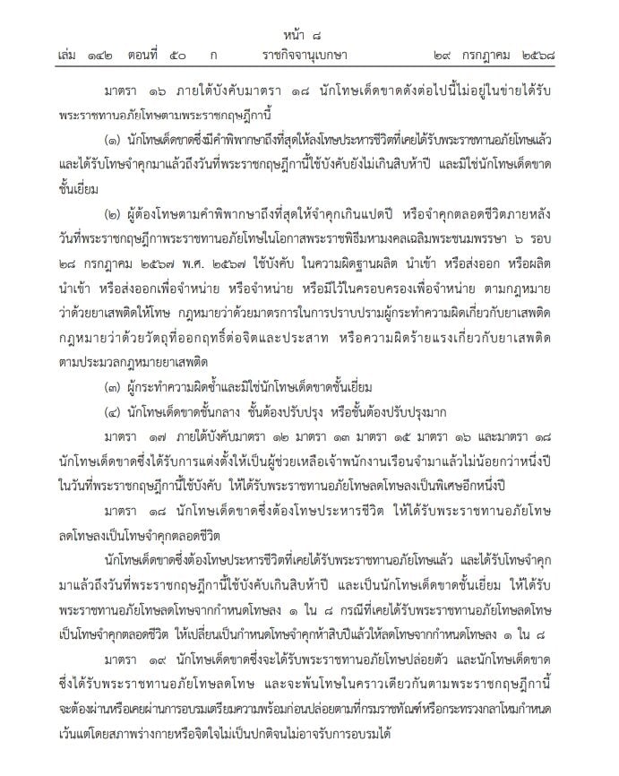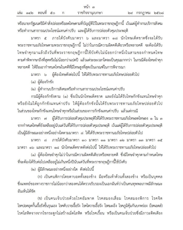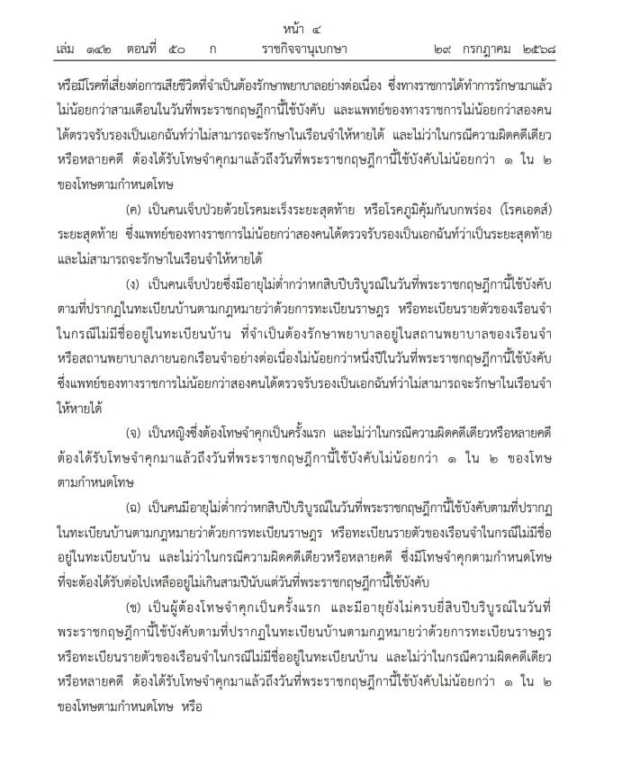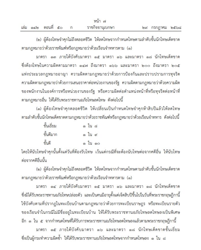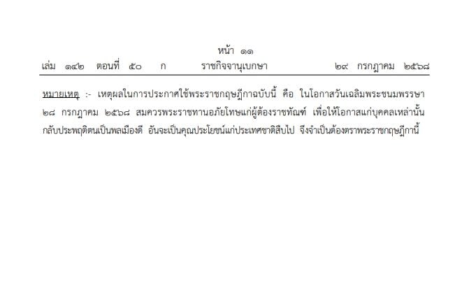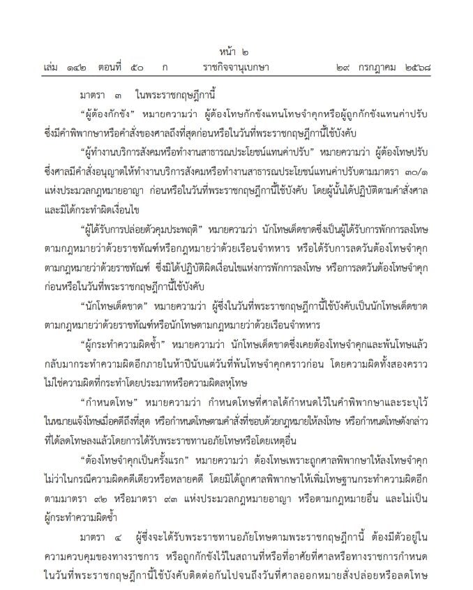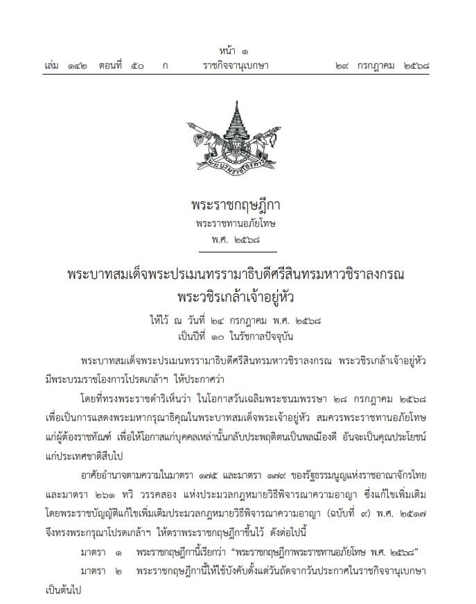 29 กรกฎาคม 2568 - ราชกิจจานุเบกษา เผยแพร่ พระราชกฤษฎีกา พระราชทานอภัยโทษ พ.ศ.2568