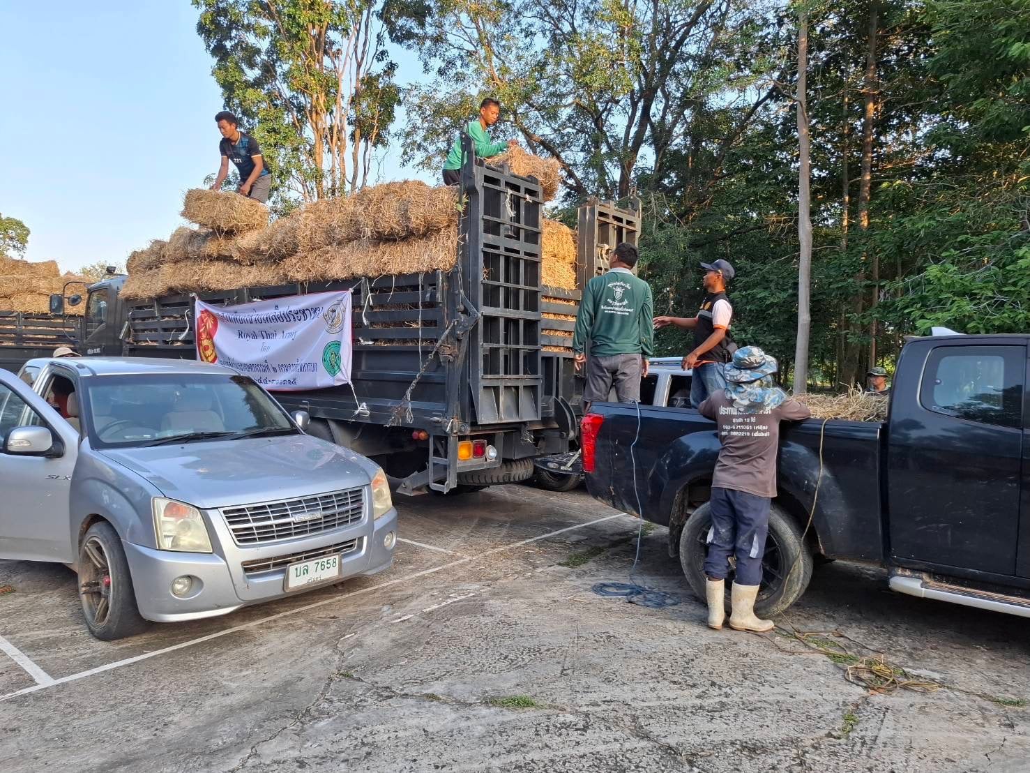 ในการนี้ กรมการสัตว์ทหารบก ร่วมกับ มูลนิธิชัยพัฒนา, กรมปศุสัตว์ และ ศูนย์อำนวยการป้องกันและแก้ไขปัญหาภัยพิบัติด้านปศุสัตว์ ได้สนับสนุนหญ้าฟ่อนแห้งจำนวน 25,000 ฟ่อน เพื่อแจกจ่ายให้แก่เกษตรกรในพื้นที่กองทัพภาคที่ 2 และพื้นที่ใกล้เคียง พร้อมจัดรถบรรทุกลำเลียงอย่างต่อเนื่อง โดยวานนี้ (2 ส.ค.68) กรมการสัตว์ทหารบก ได้ลำเลียงหญ้าฟ่อนแห้งจำนวน 1,100 ฟ่อน จาก อ.ปากช่อง จ.นครราชสีมา ไปยังพื้นที่ อ.พนมดงรัก และ อ.กาบเชิง จ.สุรินทร์