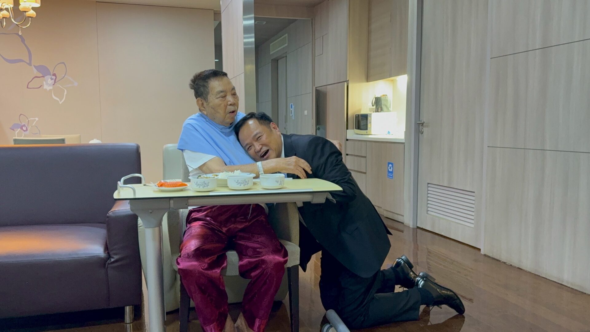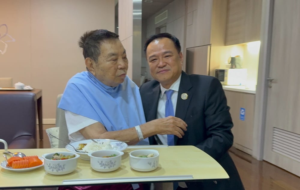ทันทีที่ถึงโรงพยาบาล นายอนุทินได้ก้มกราบที่ตักพ่อ พร้อมสวมกอดพ่อ ระหว่างที่พ่อกำลังรับประทานอาหารเย็น ทั้งคู่มีสีหน้ายิ้มแย้ม สดใส
