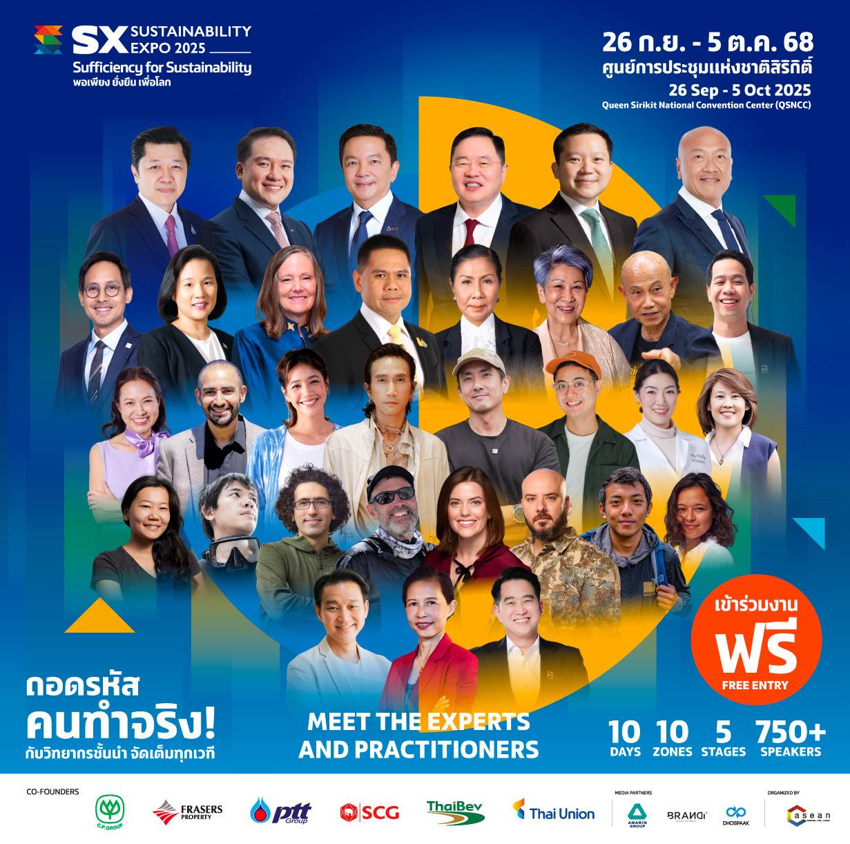 เรียนรู้จากประสบการณ์ตรงของผู้นำการเปลี่ยนแปลงและองค์กรต้นแบบที่กล้าปรับตัว เปิดรับแนวทางใหม่ และลงมือทำจริง เพื่อขับเคลื่อนประเทศไทยและภูมิภาคอาเซียนไปสู่ความสมดุลในมิติเศรษฐกิจ สังคม และสิ่งแวดล้อม อย่างยั่งยืนเต็มอิ่มตลอด 10 วันเต็ม ตั้งแต่วันที่ 26 กันยายน – 5 ตุลาคม 2568 นี้ บน เวที SX GRAND PLENARY HALL เวที SX Talk Stage และ SX Idea Lab