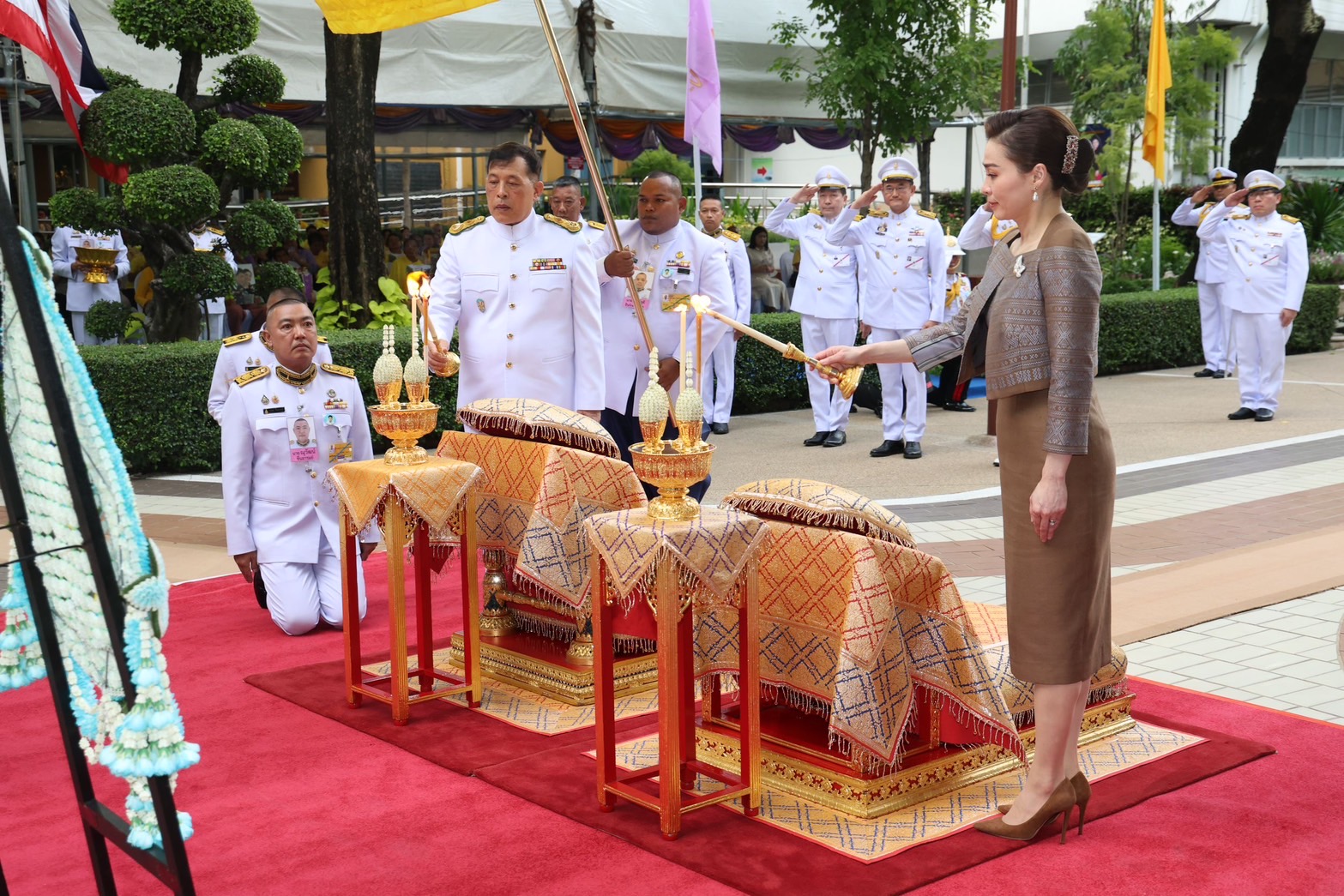 เมื่อเสด็จพระราชดำเนินถึง ศาสตราจารย์ นายแพทย์อภิชาติ อัศวมงคลกุล คณบดีคณะแพทยศาสตร์ ศิริราชพยาบาล ศาสตราจารย์ นายแพทย์ปิยะมิตร ศรีธรา อธิการบดีมหาวิทยาลัยมหิดล ศาสตราจารย์ นายแพทย์ยงยุทธ ศิริวัฒนอักษร ผู้อำนวยการโรงพยาบาลศิริราช พลเรือเอก จิรพล ว่องวิทย์ ผู้บัญชาการทหารเรือ และผู้บริหารคณะแพทยศาสตร์ศิริราชพยาบาล เฝ้าทูลละอองธุลีพระบาทรับเสด็จ
