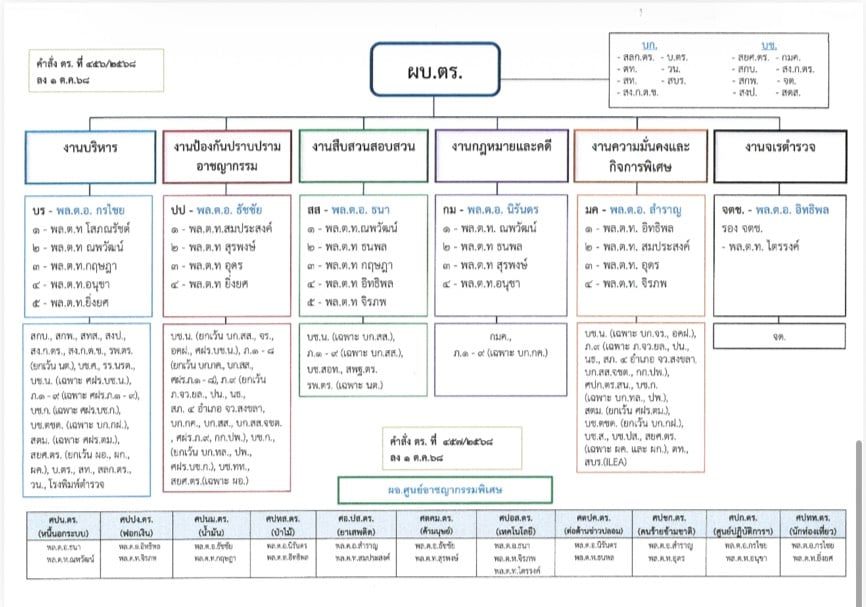 01 ต.ค. 2568 - ที่สำนักงานตำรวจแห่งชาติ (ตร.) พล.ต.อ.กิตติ์รัฐ พันธุ์เพ็ชร์ ผู้บัญชาการตำรวจแห่งชาติ (ผบ.ตร.) ลงนามในคำสั่งสำนักงานตำรวจแห่งชาติที่ 456/2568 กำหนดลักษณะงาน และ มอบหน้าที่รับผิดชอบ ให้รองผู้บัญชาการตำรวจแห่งชาติ (รอง ผบ.ตร.) จเรตำรวจแห่งชาติ (จตช.) ผู้ช่วยผู้บัญชาการตำรวจแห่งชาติ (ผู้ช่วย ผบ.ตร.) และรองจเรตำรวจแห่งชาติ ดังนี้