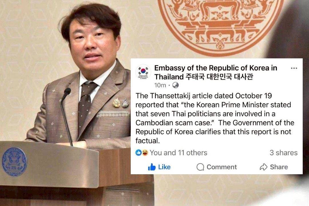 19 ต.ค. 2568 – นายสิริพงศ์ อังคสกุลเกียรติ โฆษกประจำสำนักนายกรัฐมนตรี กล่าวว่าตามที่ปรากฏสื่อบางสำนักเผยแพร่ข่าว โดยอ้างว่านายกรัฐมนตรีเกาหลีใต้เปิดเผยรายชื่อนักการเมืองไทย 7 คนที่มีส่วนเกี่ยวข้องกับขบวนการคอลเซ็นเตอร์และแก๊งสแกมเมอร์ในประเทศกัมพูชา ว่า กระทรวงการต่างประเทศ โดยสถานเอกอัครราชทูต ณ กรุงโซล ยืนยันว่าข้อมูลดังกล่าวไม่เป็นความจริง และไม่มีแหล่งข่าวหรือถ้อยแถลงใดจากทางการเกาหลีใต้ที่กล่าวเช่นนั้น