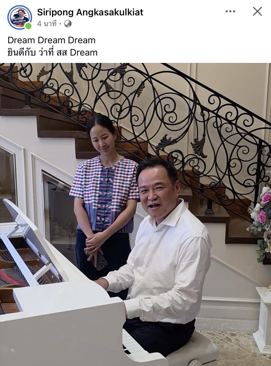 19 ต.ค.2568 – นายสิริพงศ์ อังคสกุลเกียรติ โฆษกประจำสำนักนายกรัฐมนตรี ในฐานะรองหัวหน้าพรรคภูมิใจไทย โพสต์คลิปวิดีโอที่นายอนุทิน ชาญวีรกูล นายกรัฐมนตรี และรัฐมนตรีว่าการกระทรวงมหาดไทย เล่นเปียโนเพลง All I have to do is dream ของ Everly Brothers โดยมีนางสาววิสุดา วิเชียรศิลป์ หรือ ดรีม ผู้สมัคร สส.กาญจนบุรี พรรคภูมิใจไทย ร่วมอยู่ด้วย พร้อมระบุข้อความ “Dream Dream Dream ยินดีกับว่าที่สส. Dream”