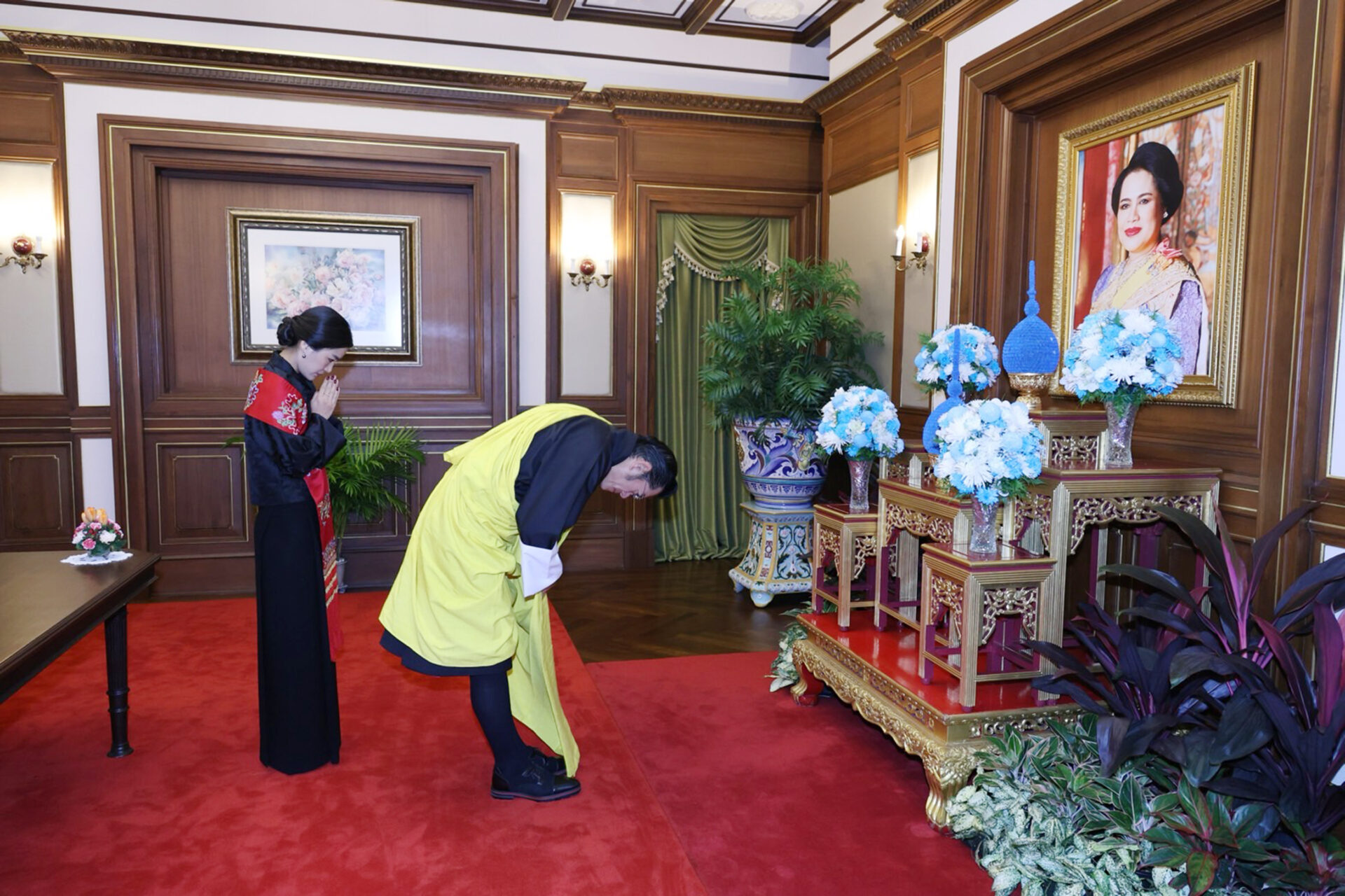 29 ต.ค.2568- เมื่อเวลา 10.00 น. สมเด็จพระราชาธิบดี จิกมี เคเซอร์ นัมเกล วังชุก แห่งราชอาณาจักรภูฏาน เสด็จพระราชดำเนินพร้อมด้วยสมเด็จพระราชินีเจตซุน เพมา วังชุก มาทรงวางพวงมาลาถวายราชสักการะหน้าพระโกศพระบรมศพ สมเด็จพระนางเจ้าสิริกิติ์ พระบรมราชินีนาถ พระบรมราชชนนี พันปีหลวง ณ พระที่นั่งดุสิตมหาปราสาท พระบรมมหาราชวัง พร้อมทั้งทรงลงพระปรมาภิไธย และพระนามาภิไธย ถวายความอาลัย อีกทั้งทรงมีกำหนดจะทรงเข้าร่วมพระราชพิธีทรงบำเพ็ญพระราชกุศลพระพิธีธรรมสวดพระอภิธรรมพระบรมศพ สมเด็จพระนางเจ้าสิริกิติ์ พระบรมราชินีนาถ พระบรมราชชนนีพันปีหลวง ณ พระที่นั่งดุสิตมหาปราสาท พระบรมมหาราชวัง ในช่วงค่ำของวันนี้