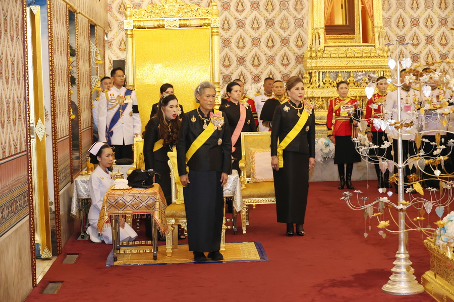 ในการนี้ สมเด็จพระกนิษฐาธิราชเจ้า กรมสมเด็จพระเทพรัตนราชสุดา เจ้าฟ้ามหาจักรีสิรินธร มหาวชิราลงกรณวรราชภักดี สิริกิจการิณีพีรยพัฒน รัฐสีมาคุณากรปิยชาติ สยามบรมราชกุมารี สมเด็จพระเจ้าน้องนางเธอ เจ้าฟ้าจุฬาภรณวลัยลักษณ์ อัครราชกุมารี กรมพระศรีสวางควัฒน วรขัตติยราชนารี ทูลกระหม่อมหญิงอุบลรัตนราชกัญญา สิริวัฒนาพรรณวดี พระเจ้าวรวงศ์เธอ พระองค์เจ้าสิริภาจุฑาภรณ์ ท่านผู้หญิงพลอยไพลิน เจนเซน และท่านผู้หญิงสิริกิติยา เจนเซน เฝ้าทูลละอองธุลีพระบาทรับเสด็จ ณ พระที่นั่งดุสิตมหาปราสาท พระบรมมหาราชวัง