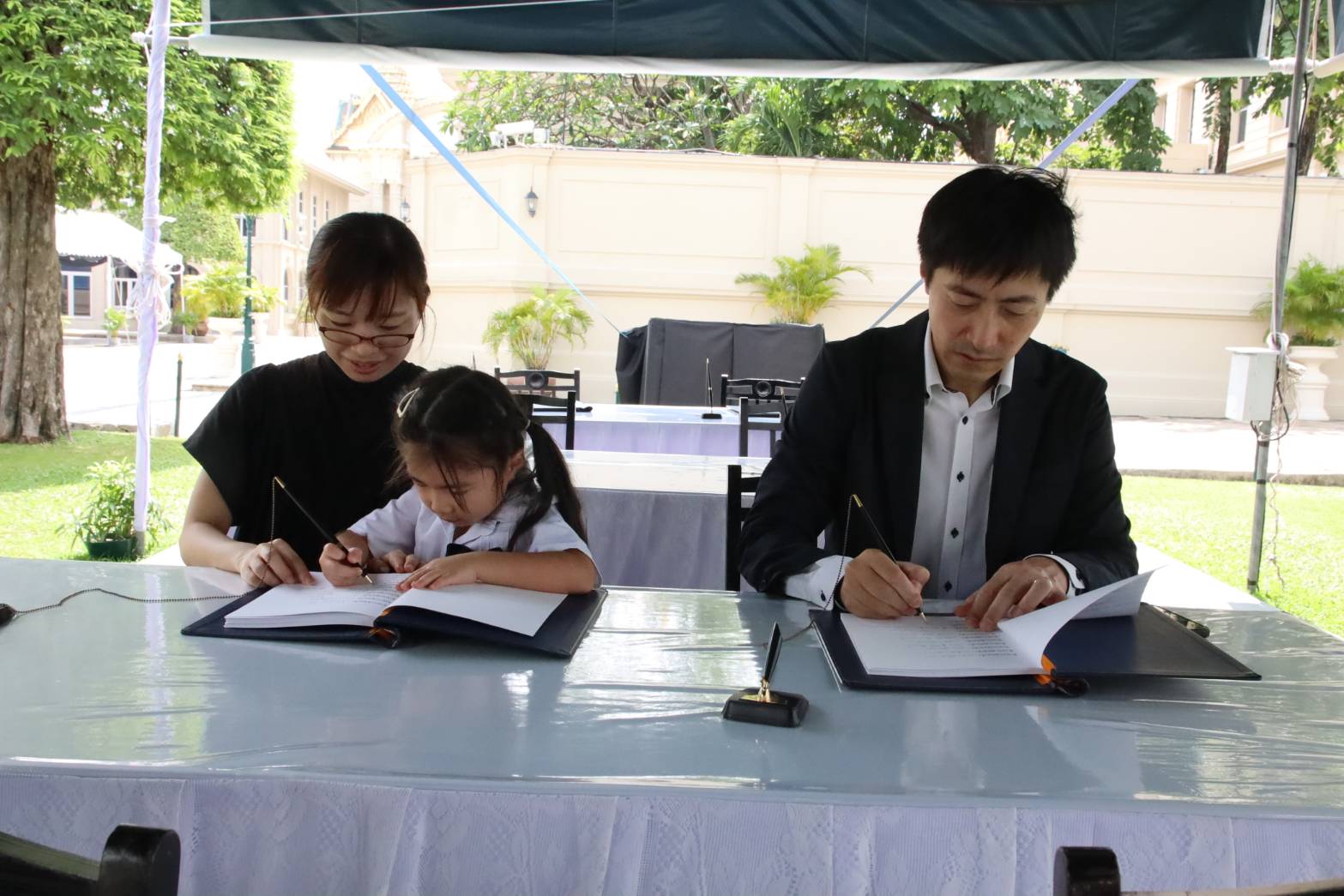 นายโยซูเกะ อิวาซากิ ชาวญี่ปุ่นเดินทางมากับครอบครัว กล่าวว่า ตนเองเคยมากราบสักการะถวายความอาลัยในหลวง รัชกาลที่ 9 เมื่อ 9 ปีที่แล้ว กระทั่งสมเด็จพระพันปีหลวงสวรรคต ตั้งใจมากราบสักการะและลงนามถวายความอาลัยด้วยความรักและเทิดทูนพระองค์เป็นอย่างสูง ราชวงศ์ไทยและญี่ปุ่นมีความสัมพันธ์แน่นแฟ้นมานาน มีมิตรไมตรีที่ดีต่อกัน ส่งผลให้เกิดการค้าหลายด้าน ปัจจุบันที่ทำงานของตนมีพนักงานชาวญี่ปุ่นราว 6,000 คนประจำสาขาต่างๆ ของธนาคารกสิกรไทย ประสานงานด้านการลงทุนระหว่างนักธุรกิจของสองประเทศเป็นประโยชน์ต่อทั้งสองฝ่าย
