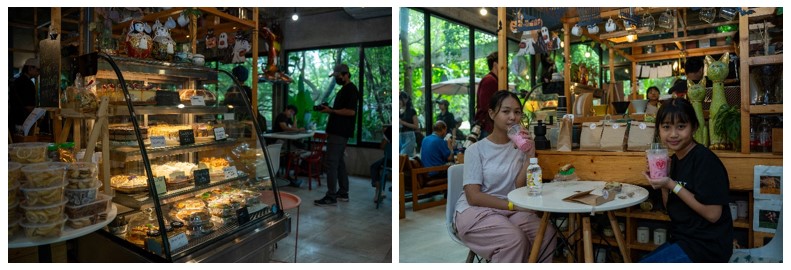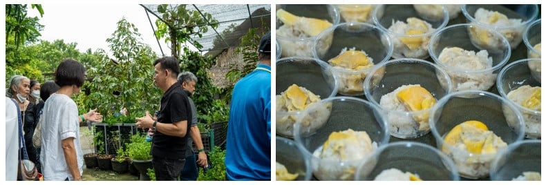 ต่อด้วย สวนคุณแผ่นดิน สวนทุเรียนปลอดสารโบราณแห่งสุดท้ายของตำบลบางขนุน ที่เจ้าของคือคุณชคดี นนทสวัสดิ์ศรี ปราชญ์เกษตรของแผ่นดินผู้ฟื้นฟูสวนทุเรียนนนท์นี้ขึ้นด้วยภูมิปัญญาดั้งเดิม ก่อนแวะพักผ่อนจิบกาแฟที่ ป่าก์ คาเฟ่ ท่ามกลางธรรมชาติร่มรื่น
