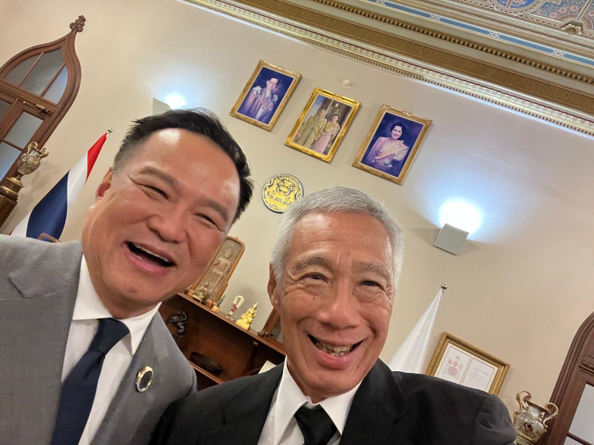 นอกจากนี้ ลี เซียนลุง ยังคอมเมนต์ในภาพเซลฟี่ที่ถ่ายด้วยตัวเองว่า ถ่ายรูปคู่กับนายกฯ อนุทินที่ทำเนียบรัฐบาล ขอบคุณสำหรับการต้อนรับอย่างอบอุ่น!