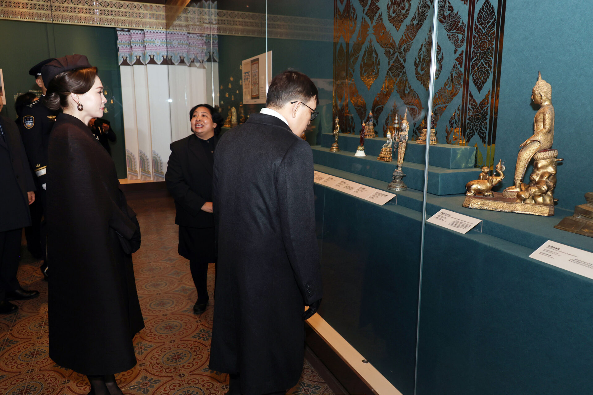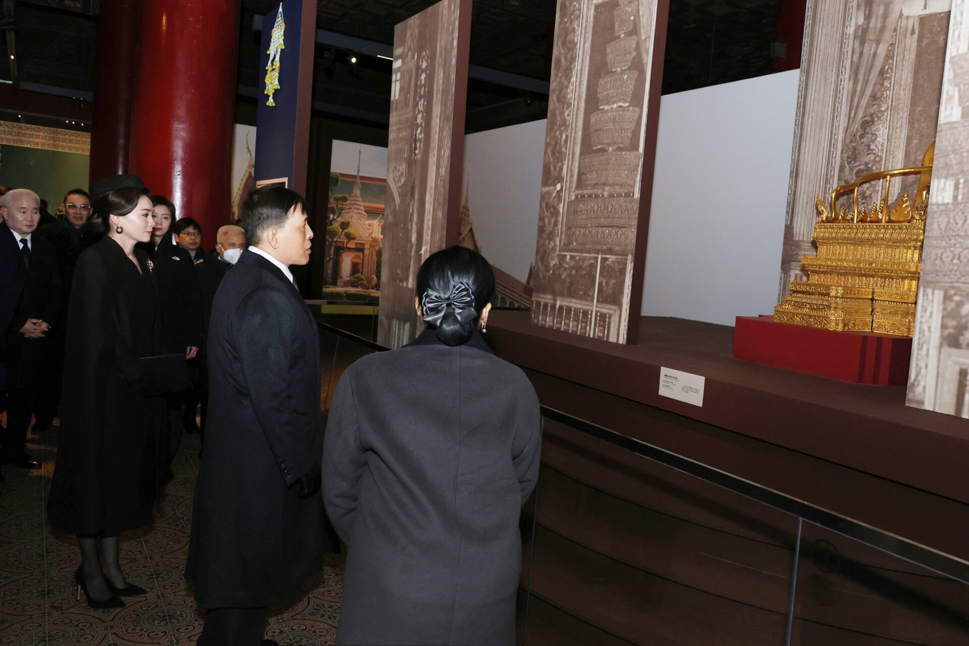 จากนั้น เสด็จพระราชดำเนินโดยรถยนต์พระที่นั่ง ไปยังพิพิธภัณฑ์พระราชวังโบราณ ในการนี้ พระราชทานพระบรมราชวโรกาสให้ นายหวัง ซวี่ตง ผู้อำนวยการพิพิธภัณฑ์พระราชวังโบราณ และผู้แทนพรรคคอมมิวนิสต์จีนประจำกระทรวงวัฒนธรรมและการท่องเที่ยว สาธารณรัฐประชาชนจีน กราบบังคมทูลรายงานความเป็นมาของการจัดนิทรรศการ “หมื่นมิ่งมงคลไชย สายสัมพันธ์นิรันดร: นิทรรศการโบราณวัตถุ ฉลอง 50 ปี ความสัมพันธ์ทางการทูตไทย-จีน” เสร็จแล้วทอดพระเนตรนิทรรศการ ฯ รอบปฐมทัศน์