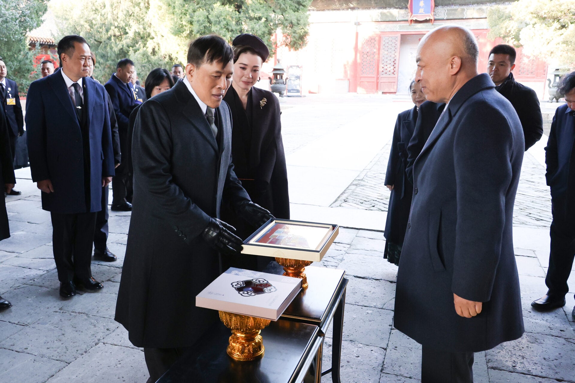 อนึ่ง เย็นวันที่ 16 พ.ย. 2568 พระบาทสมเด็จพระเจ้าอยู่หัว และสมเด็จพระนางเจ้า ฯ พระบรมราชินี เสด็จออก ณ ห้องบอลรูม เอ โรงแรมไชนาเวิลด์ กรุงปักกิ่ง พระราชทานพระบรมราชวโรกาสให้ คณะผู้ตามเสด็จถวายงานฝ่ายจีน และคณะผู้ตามเสด็จถวายงานฝ่ายไทย ในโอกาสที่เสด็จพระราชดำเนินเยือนสาธารณรัฐประชาชนจีนอย่างเป็นทางการ เฝ้าทูลละอองธุลีพระบาท รับพระราชทานของที่ระลึก