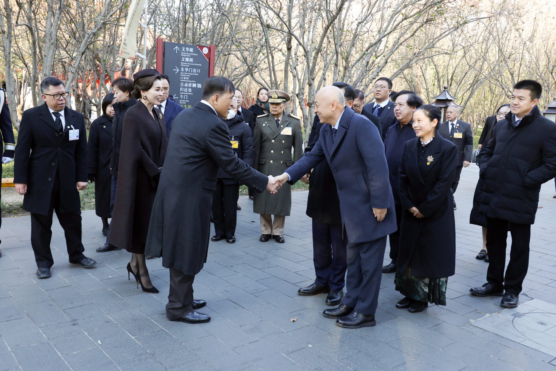 17 พฤศจิกายน 2568 - ในตอนบ่าย พระบาทสมเด็จพระเจ้าอยู่หัว และสมเด็จพระนางเจ้า ฯ พระบรมราชินี เสด็จออก ณ ล็อบบี โรงแรมไชนาเวิลด์ กรุงปักกิ่ง โรงแรมที่ประทับ พระราชทานพระบรมราชวโรกาสให้ นายวรพจน์ เจนสวัสดิชัย อัครราชทูต สถานเอกอัครราชทูต ณ กรุงปักกิ่ง พร้อมด้วยคู่สมรส และข้าราชการสำนักงานทีมประเทศไทย ณ กรุงปักกิ่ง เฝ้าทูลละอองธุลีพระบาทส่งเสด็จ