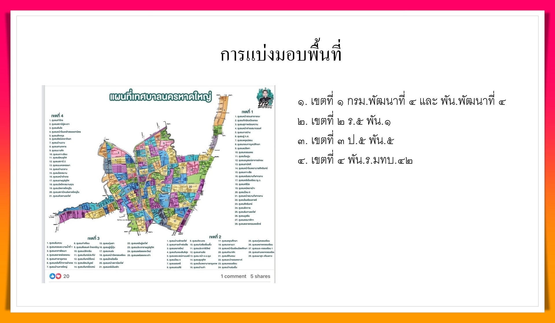 ทั้งนี้ได้มี การแบ่งเขตความรับผิดชอบของหน่วยทหารในพื้นที่ ได้แก่ เขตที่ 1 กรม.พัฒนาที่ 4และ พัน.พัฒนาที่ 4, เขตที่ 2 ร.5 พัน.1, เขตที่ 3ป.5พัน.5 และเขตที่ 4พัน.ร.มทบ.42