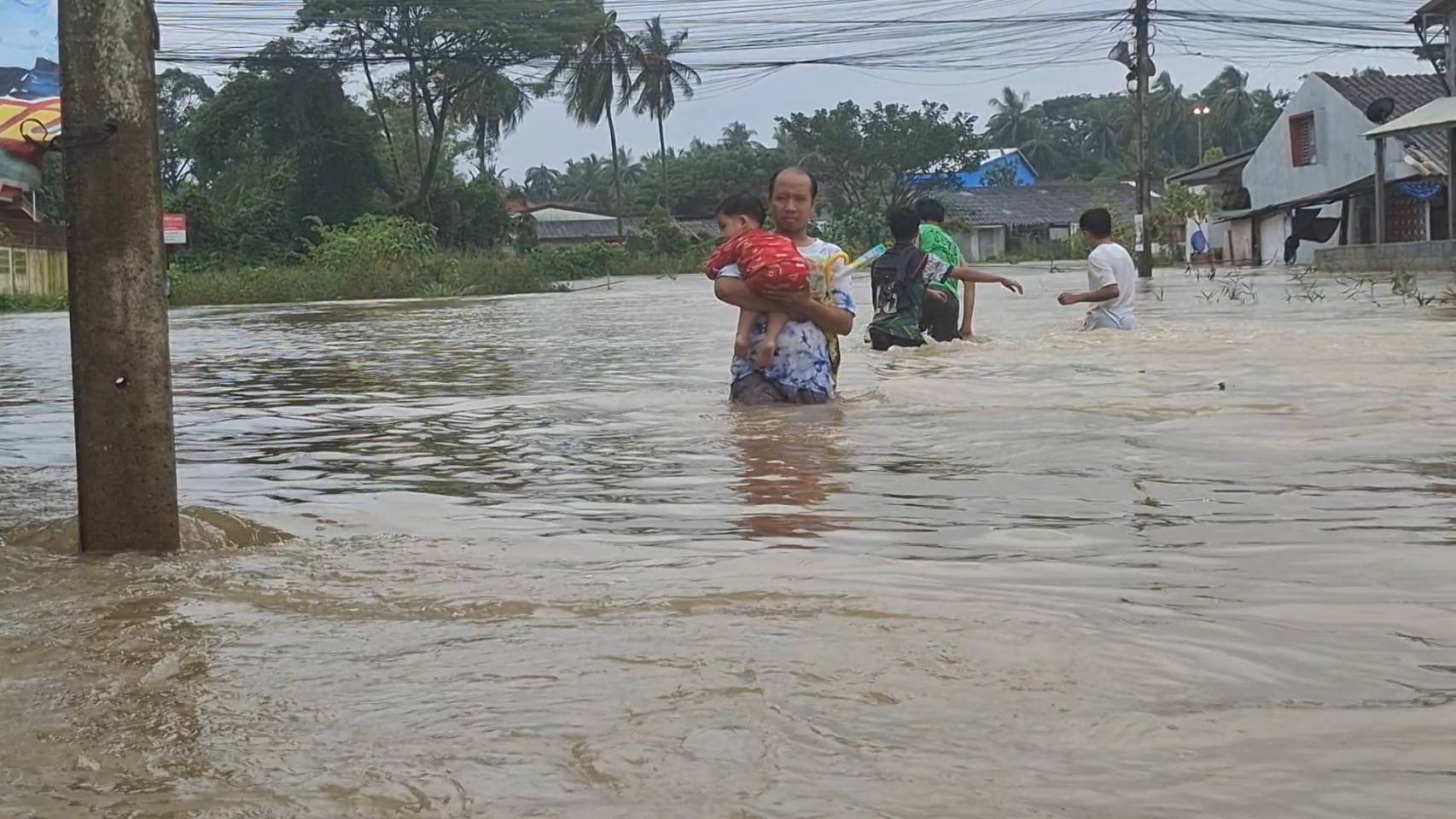 น้ำท่วมปัตตานีวิกฤตต่อเนื่อง มวลน้ำจากยะลาทะลักลงแม่น้ำปัตตานี ทำชุมชนริมคลองจมน้ำสูง 1-2 เมตร