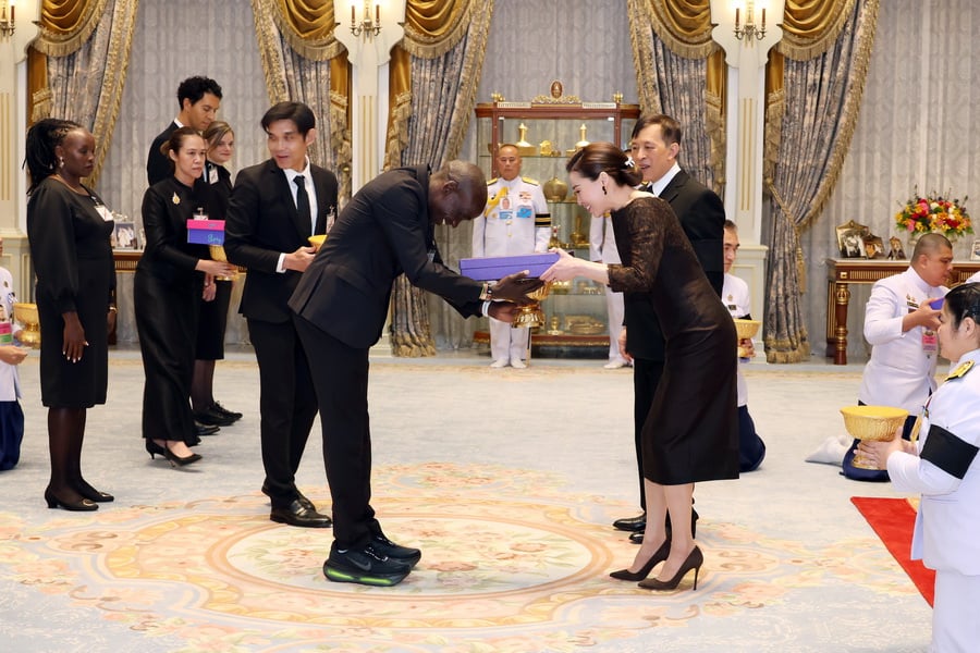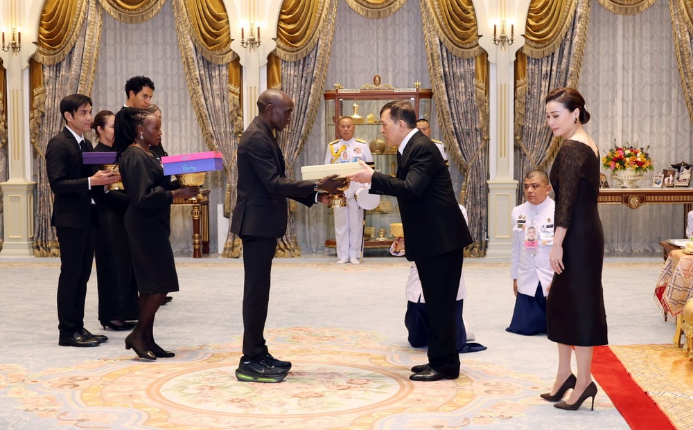 ในหลวง พระราชินี พระราชทานพระบรมราชวโรกาสให้ เอเลียด คิปโชเก้ นักวิ่งมาราธอนเคนยาเหรียญทองโอลิมปิกเฝ้าฯ