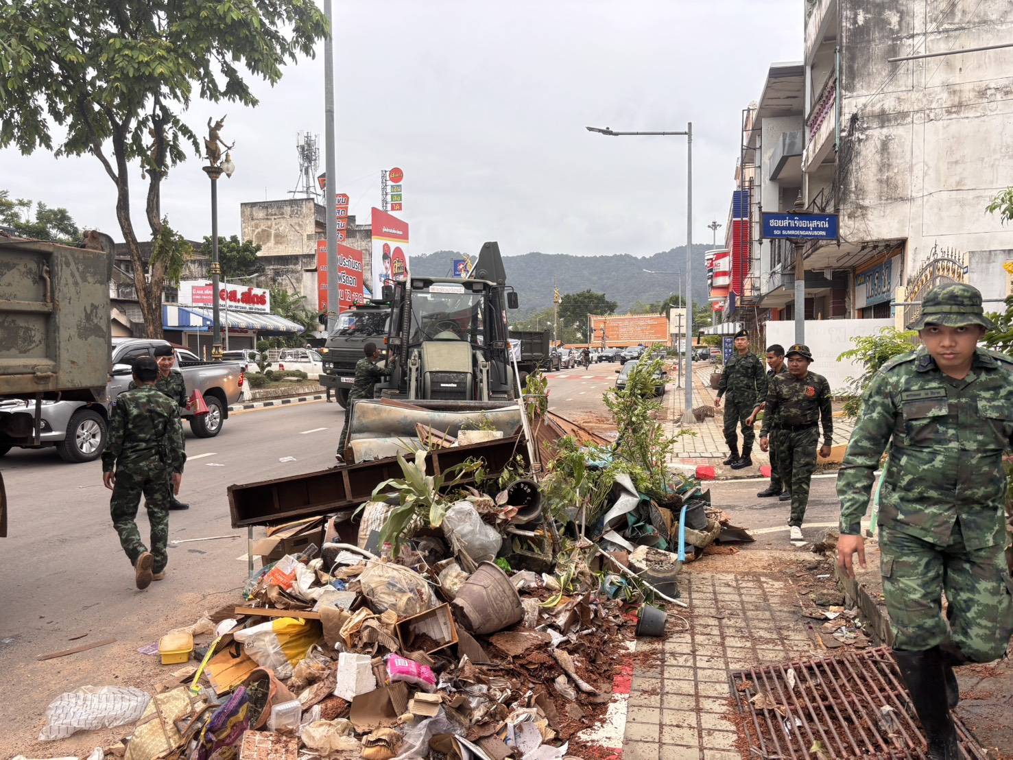 29 พฤศจิกายน 2568 - หลังสถานการณ์น้ำท่วมในอำเภอหาดใหญ่ จังหวัดสงขลา เริ่มคลี่คลายและระดับน้ำลดลงอย่างต่อเนื่อง กองทัพบก โดยกองพลพัฒนาที่ 4 ได้ระดมกำลังพล ยานพาหนะ และเครื่องมือช่างหลากหลายชนิด อาทิ รถบรรทุกขนาดใหญ่ รถตักบรรทุก รถบรรทุกเทท้าย 10 ตัน รถลากจูง 25 ตัน รถกึ่งพ่วงชานต่ำ รถบรรทุกราดน้ำ 6,000 ลิตร รถขุด รถโกยตัด และรถปั้นจั่น เข้าพื้นที่โดยทันที เพื่อเร่งฟื้นฟูและคืนสภาพพื้นที่ให้ประชาชนโดยเร็วที่สุด