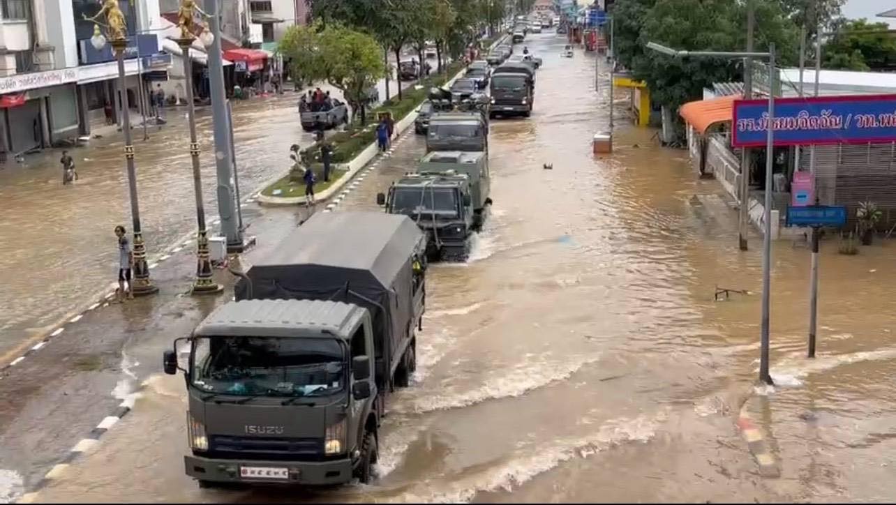 29 พฤศจิกายน 2568 - หลังสถานการณ์น้ำท่วมในอำเภอหาดใหญ่ จังหวัดสงขลา เริ่มคลี่คลายและระดับน้ำลดลงอย่างต่อเนื่อง กองทัพบก โดยกองพลพัฒนาที่ 4 ได้ระดมกำลังพล ยานพาหนะ และเครื่องมือช่างหลากหลายชนิด อาทิ รถบรรทุกขนาดใหญ่ รถตักบรรทุก รถบรรทุกเทท้าย 10 ตัน รถลากจูง 25 ตัน รถกึ่งพ่วงชานต่ำ รถบรรทุกราดน้ำ 6,000 ลิตร รถขุด รถโกยตัด และรถปั้นจั่น เข้าพื้นที่โดยทันที เพื่อเร่งฟื้นฟูและคืนสภาพพื้นที่ให้ประชาชนโดยเร็วที่สุด