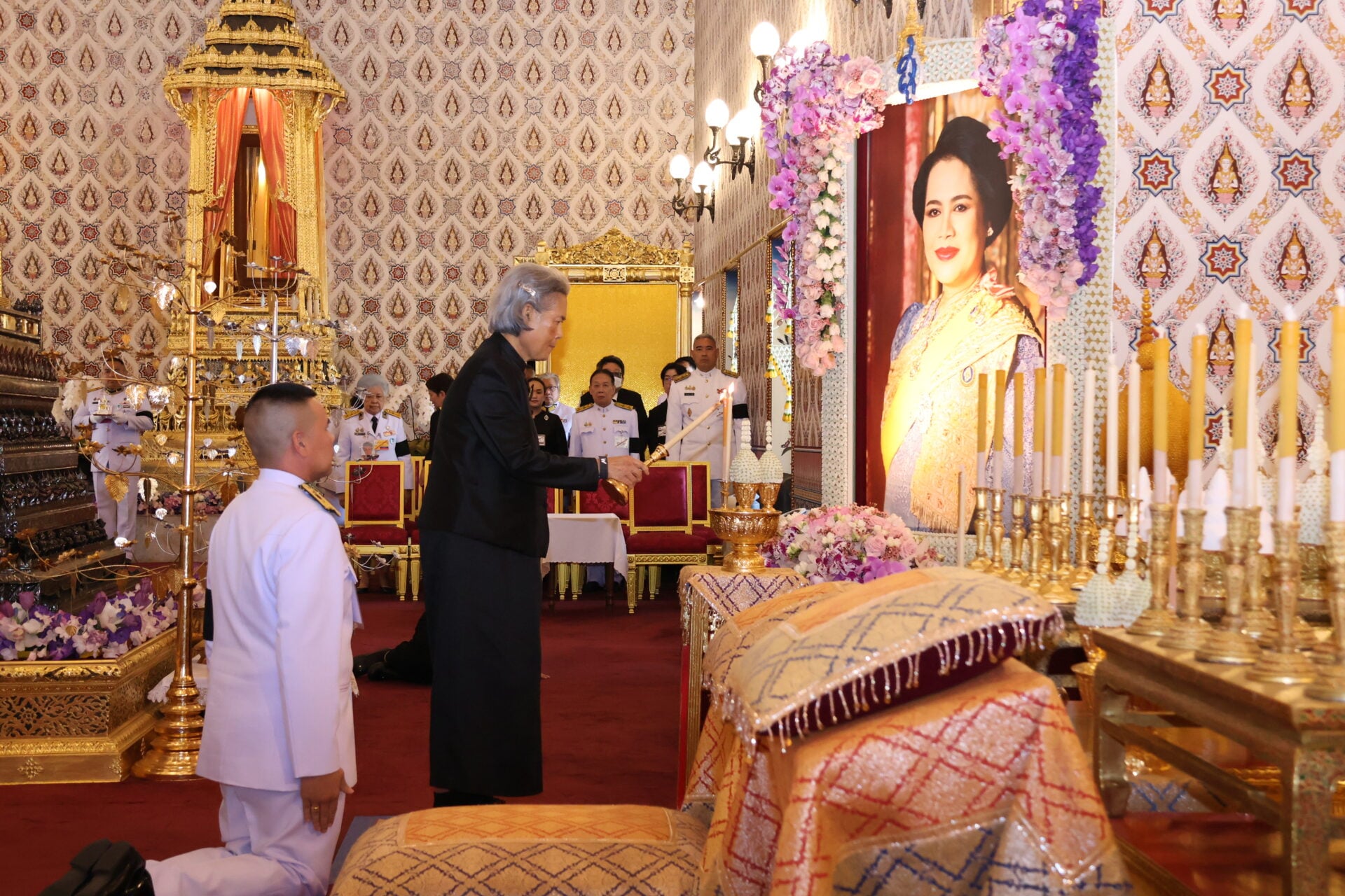 30 พ.ย.2568-เวลา 11.00 น. สมเด็จพระกนิษฐาธิราชเจ้า กรมสมเด็จพระเทพรัตนราชสุดา ฯสยามบรมราชกุมารีเสด็จฯ ไปในการบำเพ็ญพระราชกุศลถวายพระบรมศพสมเด็จพระนางเจ้าสิริกิติ์ พระบรมราชินีนาถ พระบรมราชชนนีพันปีหลวง ณ พระนั่งดุสิตมหาปราสาท ในพระบรมมหาราชวัง เมื่อเสด็จฯ ถึงพระที่นั่งดุสิตมหาปราสาท เสด็จฯ ไปยังที่ประดิษฐานพระโกศ ทรงจุดธูปเทียนเครื่องทองน้อยที่หน้าพระโกศทรงคม ทรงจุดธูปเทียนเครื่องนมัสการบูชาพระพุทธรูปประจำพระชนมวารที่หน้าพระแท่นพระนพปฎลมหาเศวตฉัตร ทรงคม และ เสด็จฯไปทรงประเคนปิ่นโตภัตตาหารแด่พระสงฆ์ ทรงหลั่งทักษิโณทก พระสงฆ์ถวายอนุโมทนา