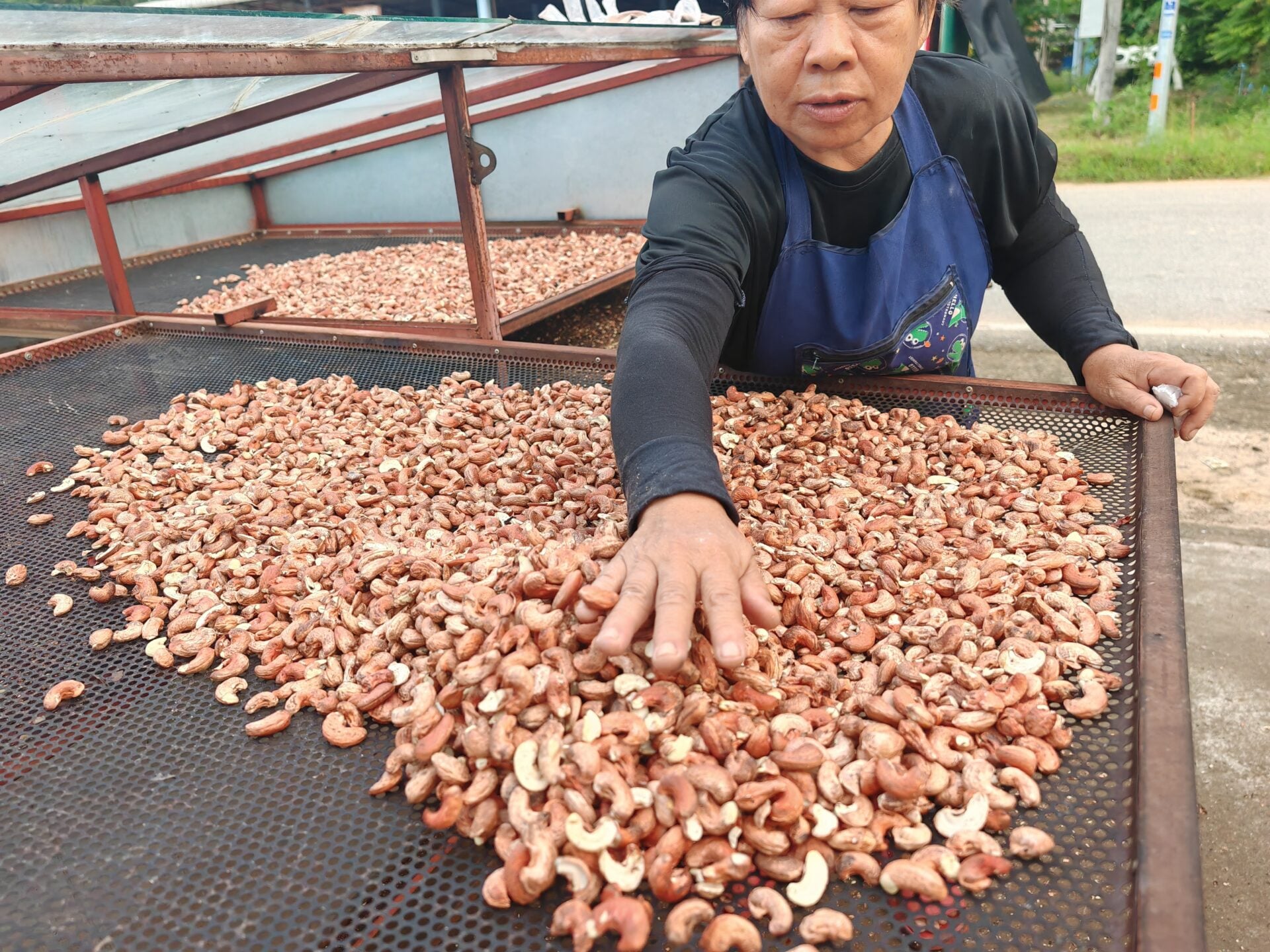 หัวใจสำคัญของกลุ่มนี้คือแนวคิด Zero Waste ใช้ประโยชน์จากทุกส่วนของต้นมะม่วงหิมพานต์ ตั้งแต่เม็ด เนื้อเยื่อ เปลือก จนถึงกิ่งไม้ที่ตัดทอน นำกลับมาใช้ใหม่ทั้งหมด ไม่ว่าจะเป็นการทำปุ๋ยหมัก เพาะต้นพันธุ์ หรือขายเปลือกให้โรงงานสำหรับสกัดทำผ้าเบรก นี่คือการใช้ทรัพยากรอย่างคุ้มค่าและยั่งยืนที่สุด