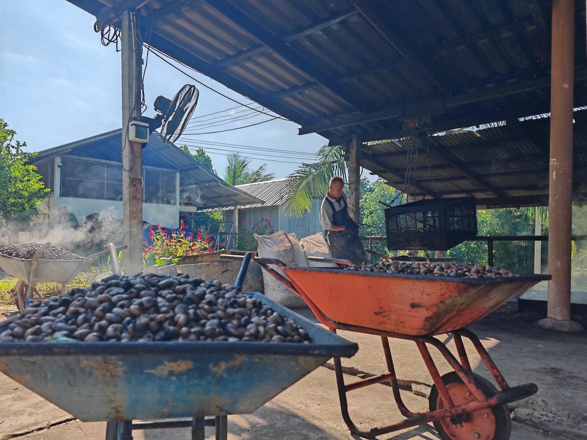 จุดเปลี่ยนสำคัญมาจากเมื่อผลผลิตมากขึ้น การรวมกลุ่มเพื่อสร้างอำนาจต่อรองและต่อยอดผลผลิตให้มีมูลค่าสูงขึ้นก็ได้เกิดขึ้น เกษตรกรไม่ต้องขายเม็ดดิบให้พ่อค้าคนกลางอีกต่อไป แต่ร่วมกันจัดตั้ง “วิสาหกิจชุมชนกลุ่มส่งเสริมอาชีพบ้านหาดไก่ต้อย” ภายใต้การนำของ พี่แอ๊ด นางวันทรา ผ่านคำ ผู้เป็นกำลังสำคัญในการขับเคลื่อนพัฒนาชุมชนให้ก้าวไปข้างหน้าอย่างมั่นคง