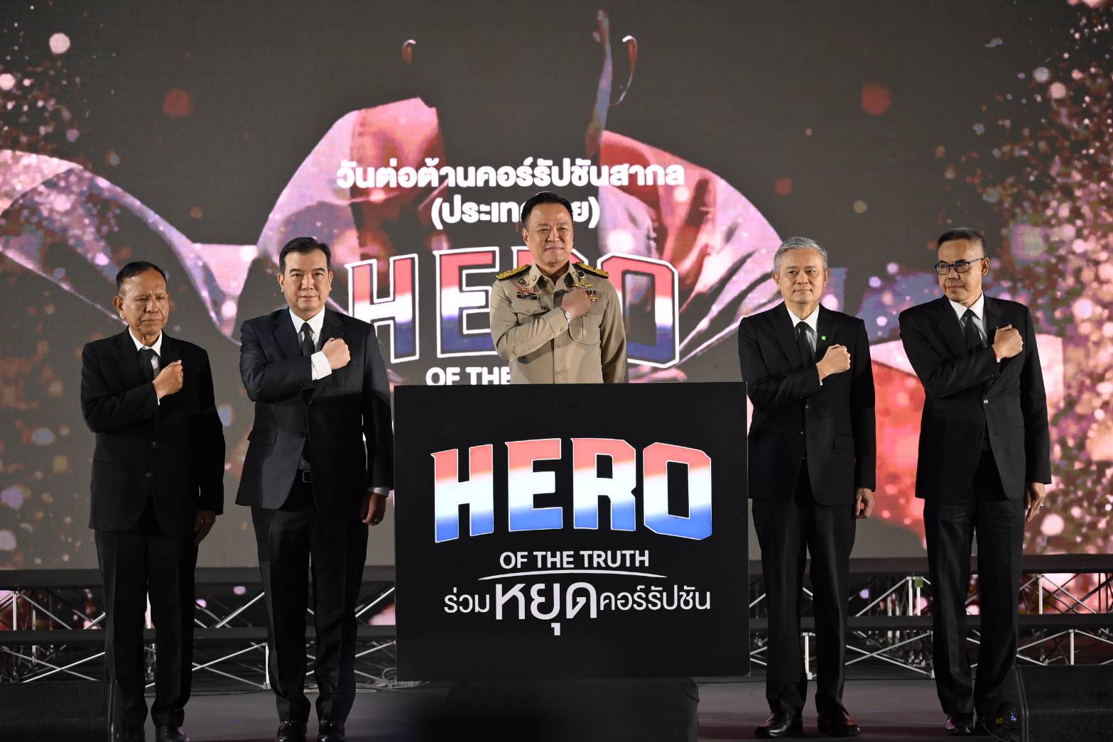 9 ธ.ค. 2568-ที่ฮอลล์ 4 ศูนย์แสดงสินค้าและการประชุมอิมแพ็ค เมืองทองธานี นายอนุทิน ชาญวีรกูล นายกรัฐมนตรีและรมว.มหาดไทย เป็นประธานในการประกาศเจตนารมณ์ต่อต้านการทุจริต ภายในงานวันต่อต้านคอร์รัปชันสากล (ประเทศไทย) “HERO OF THE TRUTH ร่วมหยุดคอร์รัปชัน” โดยมีประธาน คณะกรรมการป้องกันและปราบปรามการทุจริตแห่งชาติ (ป.ป.ช.) ประธานคณะกรรมการป้องกันและปราบปรามการทุจริตในภาครัฐ (ป.ป.ท.) และหน่วยงานที่เกี่ยวข้องเข้าร่วม