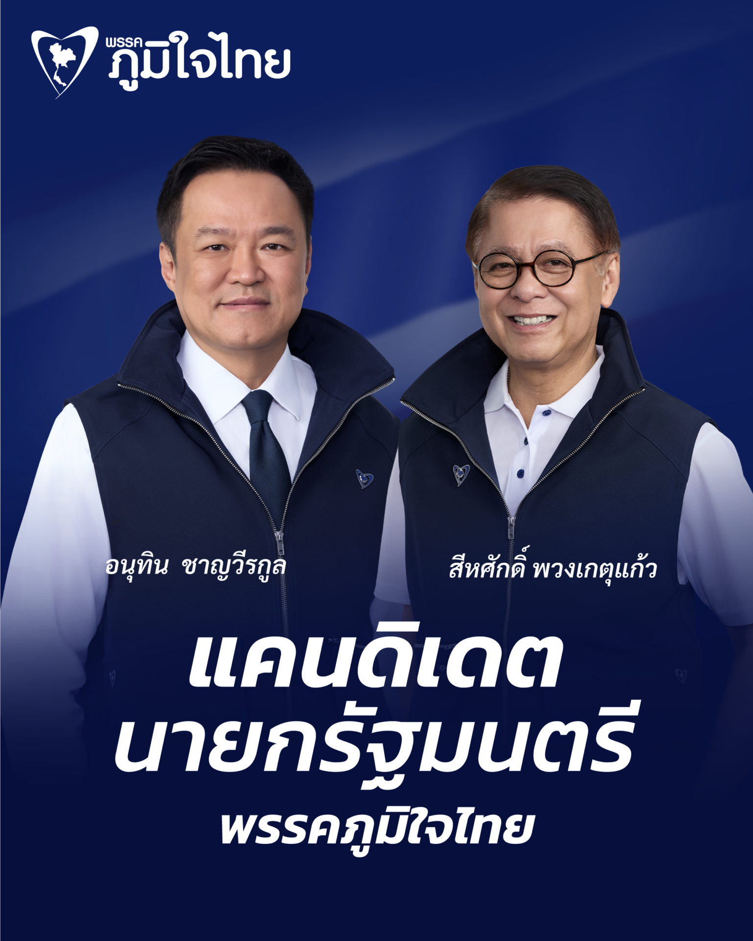 25 ธ.ค.2568 - พรรคภูมิใจไทย มีการเผยแพร่เอกสารเกี่ยวกับแคนดิเดตนายกรัฐมนตรีของพรรค โดยเนื้อหาระบุว่า พรรคภูมิใจไทย มีมติเสนอชื่อบุคคลที่พรรคเห็นสมควรให้ดำรงตำแหน่งนายกรัฐมนตรีหรือแคนดิเดตนายกรัฐมนตรี 2 ท่าน ได้แก่ นายอนุทิน ชาญวีรกูล หัวหน้าพรรค และนายสีหศักด์ พวงเกตุแก้ว ซึ่งทั้ง 2 ได้ตอบรับแล้ว เหตุผลที่เสนอชื่อนายอนุทิน เนื่องจากเป็นนายกรัฐมนตรี ในปัจจุบัน มีประสบการณ์การบริหารประเทศ และได้รับการยอมรับสนับสนุนจากประชาชนให้ทำงานต่อเนื่อง โดยเฉพาะในสถานการณ์ปัจจุบันที่ประเทศไทยมีภัยคุกคามหลายด้าน จำเป็นต้องมีนายกรัฐมนตรีมาทำงานต่อเนื่อง และเห็นว่านายอนุทิน มีความเหมาะสมมากที่สุด