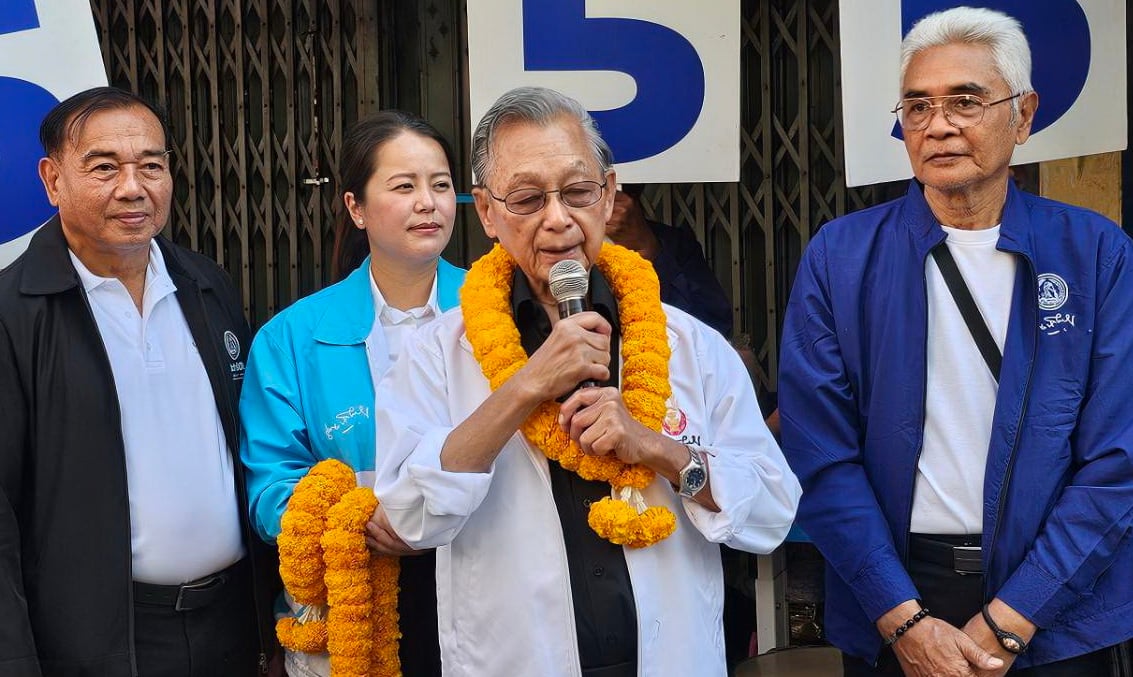 "ชวน หลีกภัย" ลงพื้นที่ตลาดปากน้ำ ช่วยผู้สมัคร สส.ประชาธิปัตย์ หาเสียง ชูสานต่อเบี้ยผู้สูงอายุ 1,000 บาท