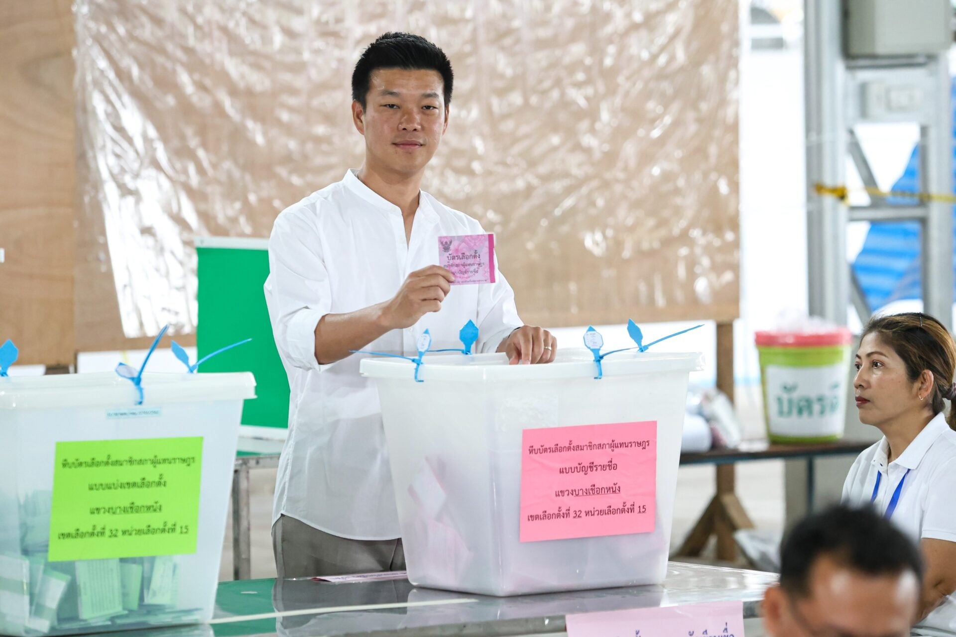 8 ก.พ. 2569 – เวลา09.46 น. ที่วัดทองบางเชือกหนัง นายณัฐพงษ์ เรืองปัญญาวุฒิ หัวหน้าพรรคประชาชนและแคนดิเดตนายกรัฐมนตรีของพรรค เดินทางมาใช้สิทธิ์ที่หน่วยเลือกตั้งที่32 หน่วยเลือกที่15 เขตตลิ่งชัน