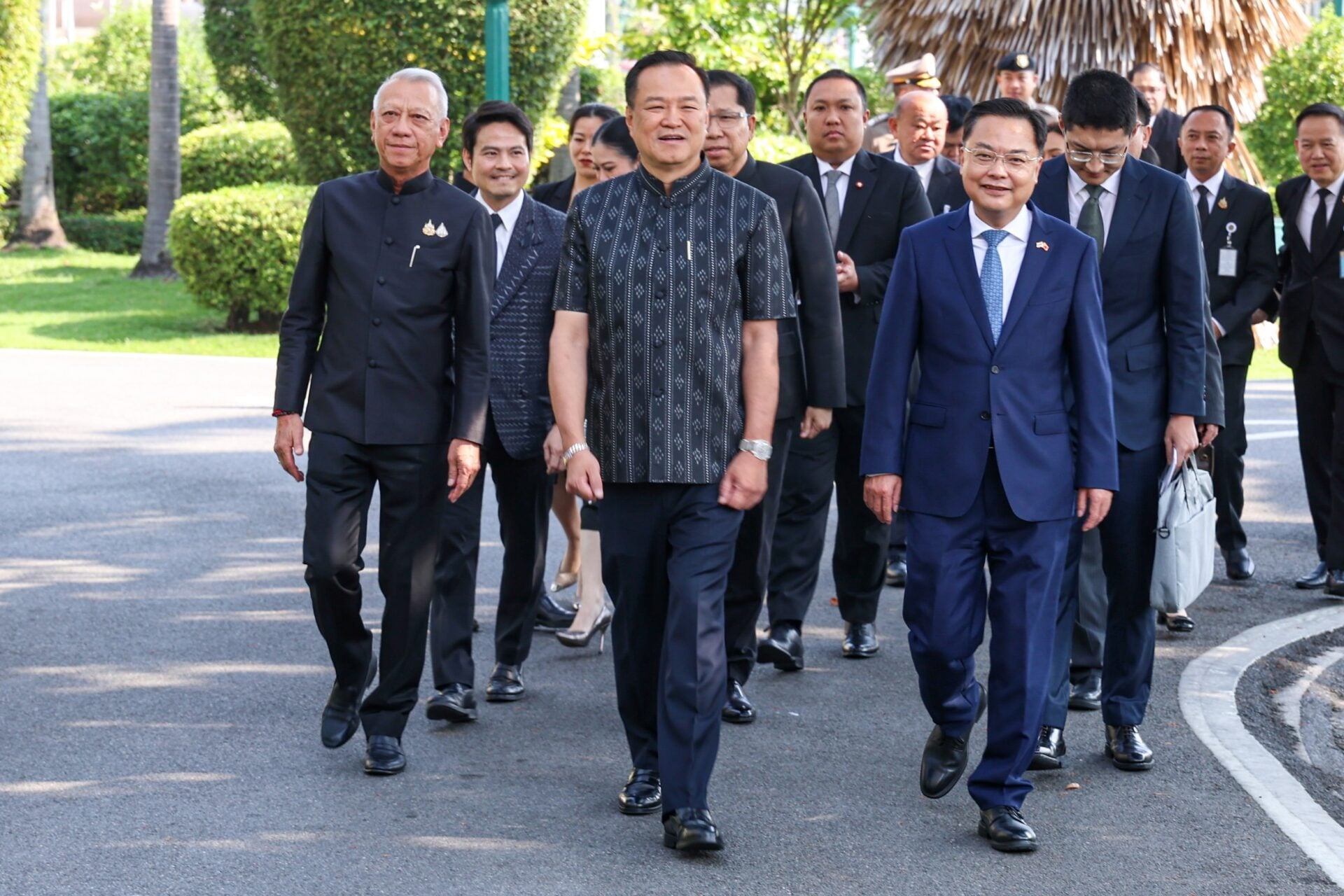ที่ทำเนียบรัฐบาล นายอนุทิน ชาญวีรกูล นายกรัฐมนตรี และรมว.มหาดไทย ในฐานะหัวหน้าพรรคภูมิใจไทย ให้สัมภาษณ์กรณีประธ