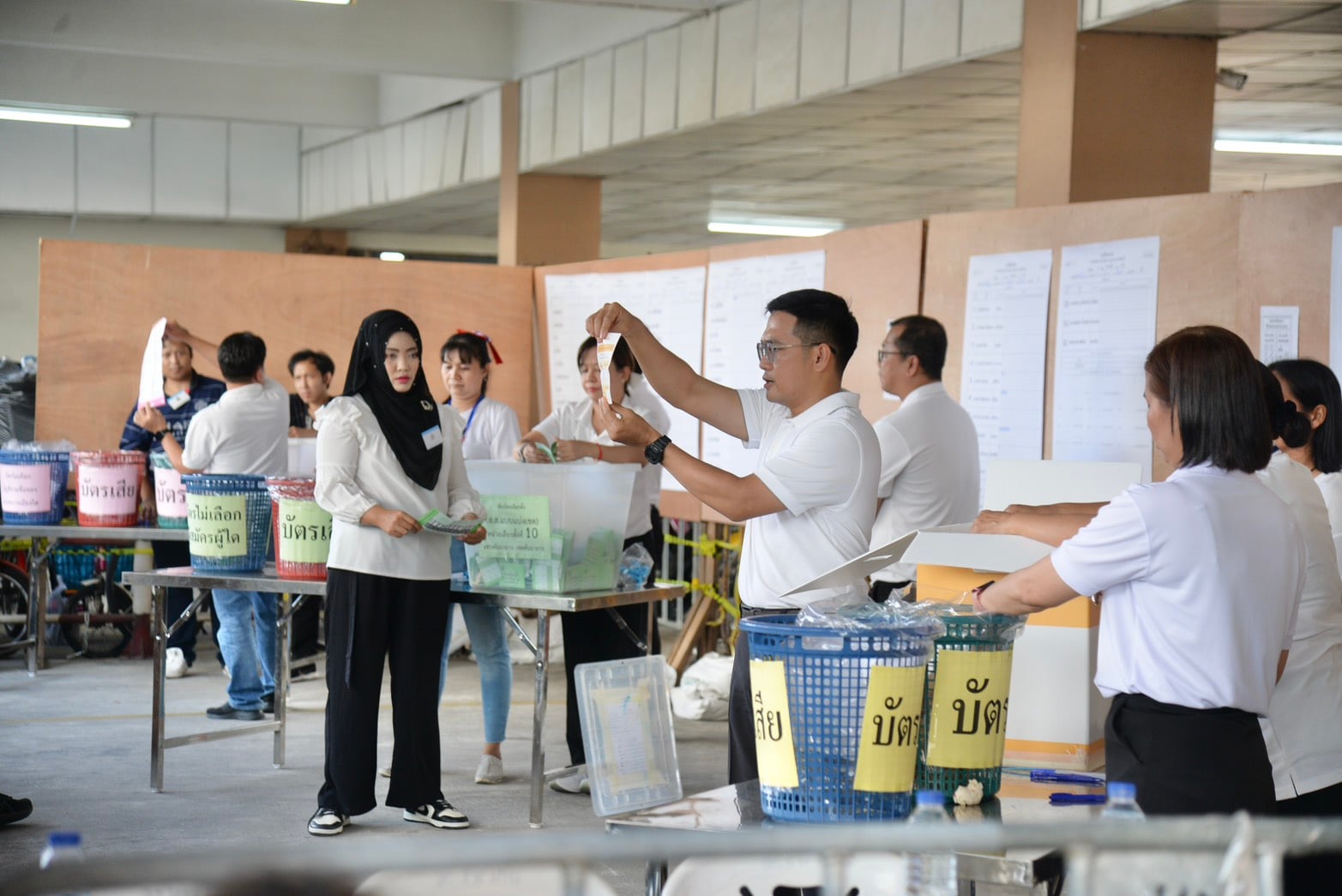 22ก.พ. 2569- ผู้สื่อข่าวรายงานว่าเป็นวันที่คณะกรรมการการเลือกตั้ง(กกต.)กำหนดให้มีการออกเสียงลงคะแนนเลือกตั้งใหม่ใน 3 หน่วยเลือกตั้งและนับคะแนนใหม่ใน 1หน่วยเลือกตั้ง ซึ่งบรรยากาศการออกเสียงลงคะแนนใหม่และนับคะแนนใหม่ที่ หน่วยเลือกตและหน่วยออกเสียงประชามติที่ 9 เขตเลือกตั้งและเขตออกเสียงประชามติที่ 15 กรุงเทพมหานคร ณ บริเวณอาคารอมรพันธ์แซทเทอไลท์คอนโดทาวน์ (R4) แขวงคันนายาว เขตคันนายาว กรุงเทพมหานครตั้งแต่เช้ามี สื่อมวลชนทั้งไทยและต่างประเทศ สมาชิกวุฒิสภาและ ผู้เชี่ยวชาญด้านไอที ต่างมาสังเกตการณ์ออกเสียงลงคะแนนเพื่อดูว่าบัตรเลือกตั้งที่กกต. นำมาใช้นั้นยังคงเป็นบัตรที่มีบาร์โค้ดและ QR code หรือไม่ และการปฏิบัติหน้าที่ของกรรมการประจำหน่วยเป็นอย่างไร โดยว่าที่ร้อยตรีสัมพันธ์ แสงคำเลิศ ผู้อำนวยการการเลือกตั้งประจำกรุงเทพมหานคร ซึ่งเดินทางมาดูตรวจดูความเรียบร้อยของการออกเสียงลงคะแนน กล่าวว่าโดยภาพรวมของการเปิดหน่วยลงคะแนนเป็นไปด้วยความเรียบร้อยโดยหน่วยเลือกตั้งนี้มีผู้มีสิทธิ์เลือกตั้ง 716 คนคาดว่าจะมาใช้สิทธิ์ประมาณ 70%หรือประมาณ 500 คนซึ่งการจัดหน่วยมีการขยับมาอยู่ใต้อาคาร เนื่องจากครั้งที่แล้วเป็นเต็นท์เมื่อเกิดพายุฝนทำให้เต็นท์ถล่ม บัตรเลือกตั้งเสียหาย อุปกรณ์เปียก ไม่สามารถดำเนินการเลือกตั้งและนับคะแนนต่อไปได้จึงต้องมีการออกเสียงลงคะแนนใหม่ในวันนี้ ซึ่งการเลือกตั้งครั้งนี้ยังคงยึดระเบียบ และรูปแบบการเลือกตั้งเหมือนการเลือกตั้งเมื่อวันที่ 8 ก.พ.คือให้มีการออกเสียงลงคะแนนใหม่ตั้งแต่เวลา 8:00-17:00 นเมื่อปิดหน่วยแล้วจะมีการนับคะแนนที่หน่วยเลือกตั้ง ปิดประกาศผลคะแนนที่หน้าหน่วย และนำส่งไปยังคณะกรรมการประจำเขตเลือกตั้งที่15 ก่อนจะรายงานไปอย่างสำนักงานกกต.ประจำกรุงเทพมหานคร ส่วนบัตรเลือกตั้งก็ยังคงมี 3 แบบคือบัตรเลือกตั้งแบบแบ่งเขตเลือกตั้ง แบบบัญชีรายชื่อและ บัตรออกเสียงประชามติ