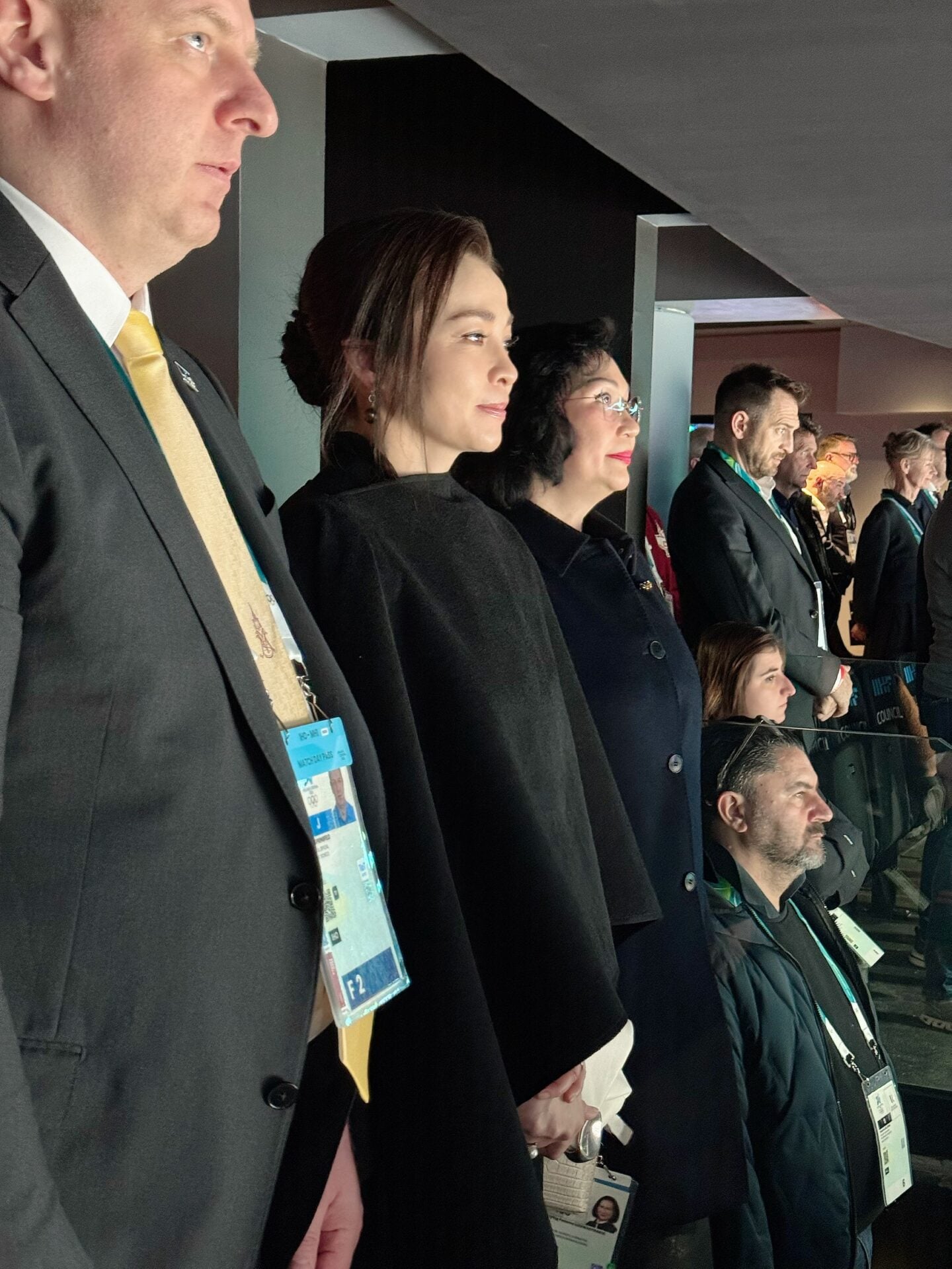พระราชินีทอดพระเนตรแข่งขันฮอกกี้น้ำแข็งหญิงรอบชิงเหรียญทองที่เมืองมิลาน ฉลองพระองค์สง่างาม