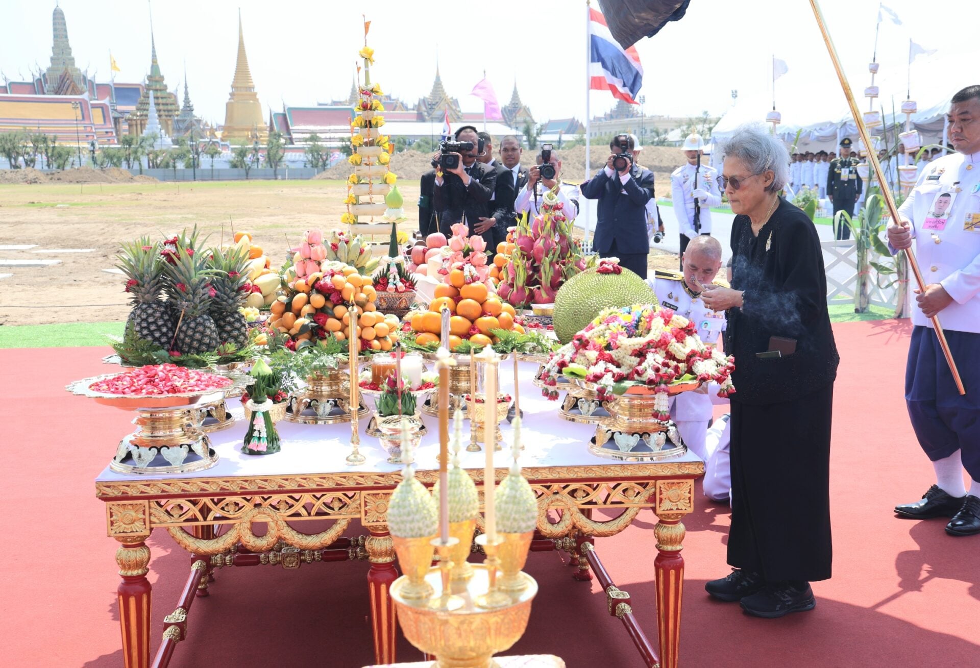 กรมสมเด็จพระเทพฯ ทรงประกอบพิธีปักหมุดวางผังก่อสร้างพระเมรุมาศพระราชพิธีถวายพระเพลิงพระบรมศพ "พระพันปีหลวง" บวงสรวงเป็นสวัสดิมงคล อธิบดีกรมศิลป์เผยยกเสาพระเมรุมาศเมษานี้