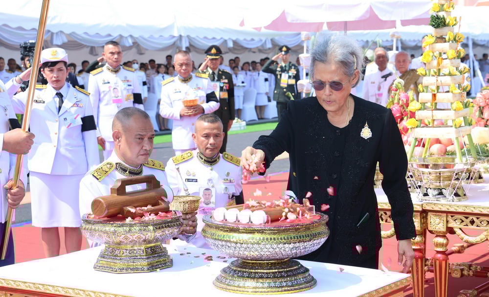 ต่อมาสมเด็จพระกนิษฐาธิราชเจ้า กรมสมเด็จพระเทพรัตนราชสุดา ฯ สยามบรมราชกุมารี เสด็จ ฯ ไปยังมณฑลพิธี ทรงสุหร่ายหมุด และเครื่องมือช่าง โหรหลวงลั่นฆ้องชัย พราหมณ์เป่าสังข์ เจ้าพนักงานภูษามาลาแกว่งบัณเฑาะว์ เจ้าพนักงานประโคมแตร ปี่พาทย์บรรเลงเพลงลงสรง ทรงโปรยข้าวตอกดอกไม้หมุด และเครื่องมือช่าง โหรหลวงลั่นฆ้องชัย พราหมณ์เป่าสังข์ เจ้าพนักงานภูษามาลาแกว่งบัณเฑาะว์ เจ้าพนักงานประโคมแตร ปี่พาทย์บรรเลงเพลงโปรยข้าวตอก พระราชทานหมุดให้ นายอนุทิน ชาญวีรกูล นายกรัฐมนตรี เสด็จเข้าพลับพลาพิธี ประทับพระราชอาสน์