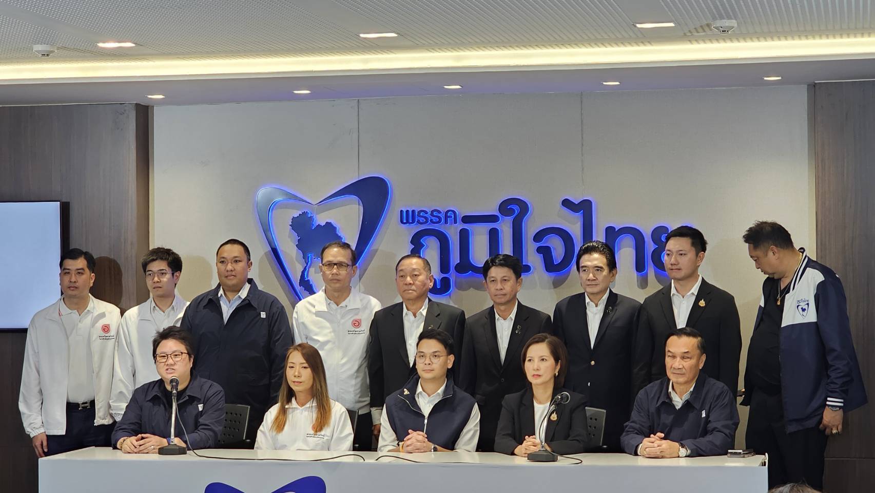 26 ก.พ.2569 - ที่พรรคภูมิใจไทย นายไชยชนก ชิดชอบ เลขาธิการพรรคภูมิใจไทย น.ส.แนน บุณย์ธิดา สมชัย โฆษกพรรคฯ นายทรงศักดิ์ ทองศรี แกนนำพรรคฯ และนายสุชาติ ชมกลิ่น สส.ชลบุรี พรรคภูมิใจไทย พร้อมด้วย 5 สส. พรรคพลังประชารัฐ นำโดย น.ส.ตรีนุช เทียนทอง รักษาการหัวหน้าพรรคพลังประชารัฐ รวมถึง น.ส.รสรินทร์ ศรัณย์เกตุ สส.อุตรดิตถ์ เขต 2 พรรคโอกาสใหม่ ร่วมกันแถลงข่าว