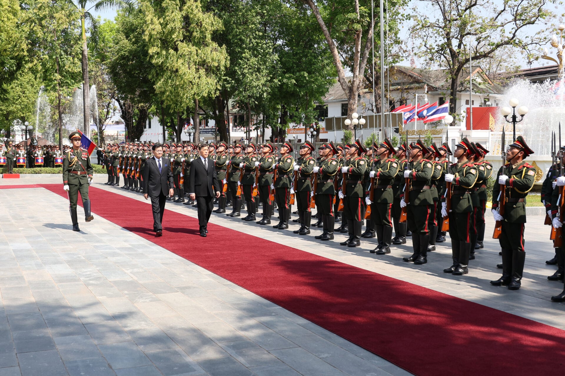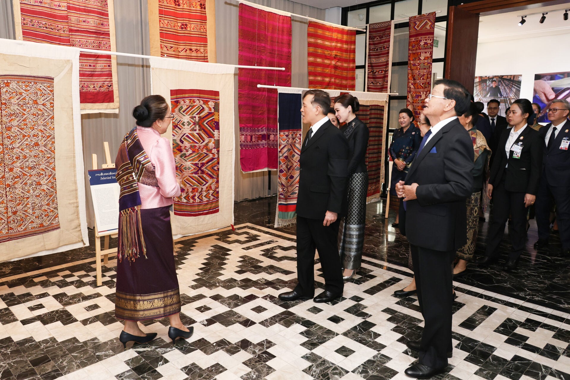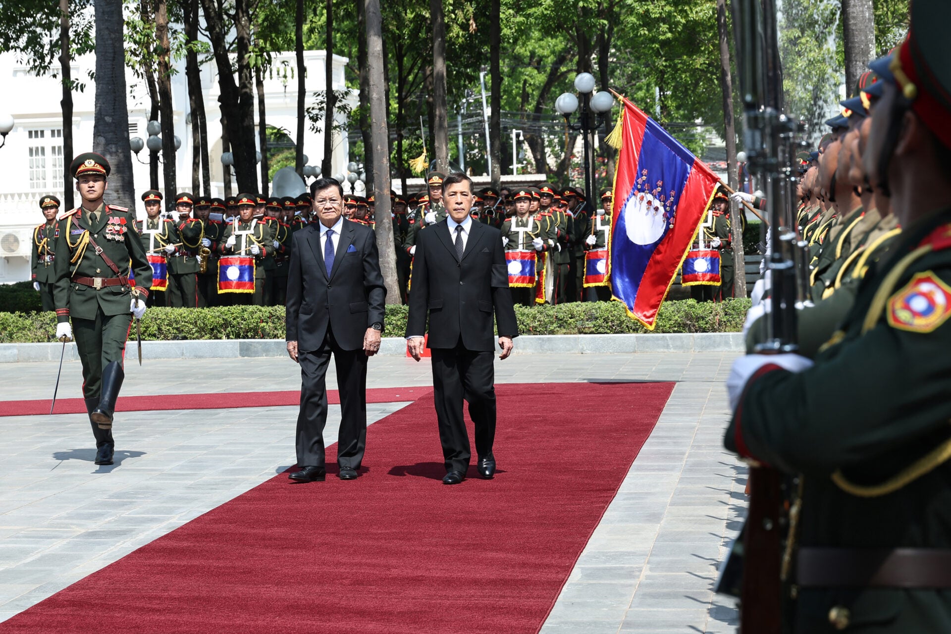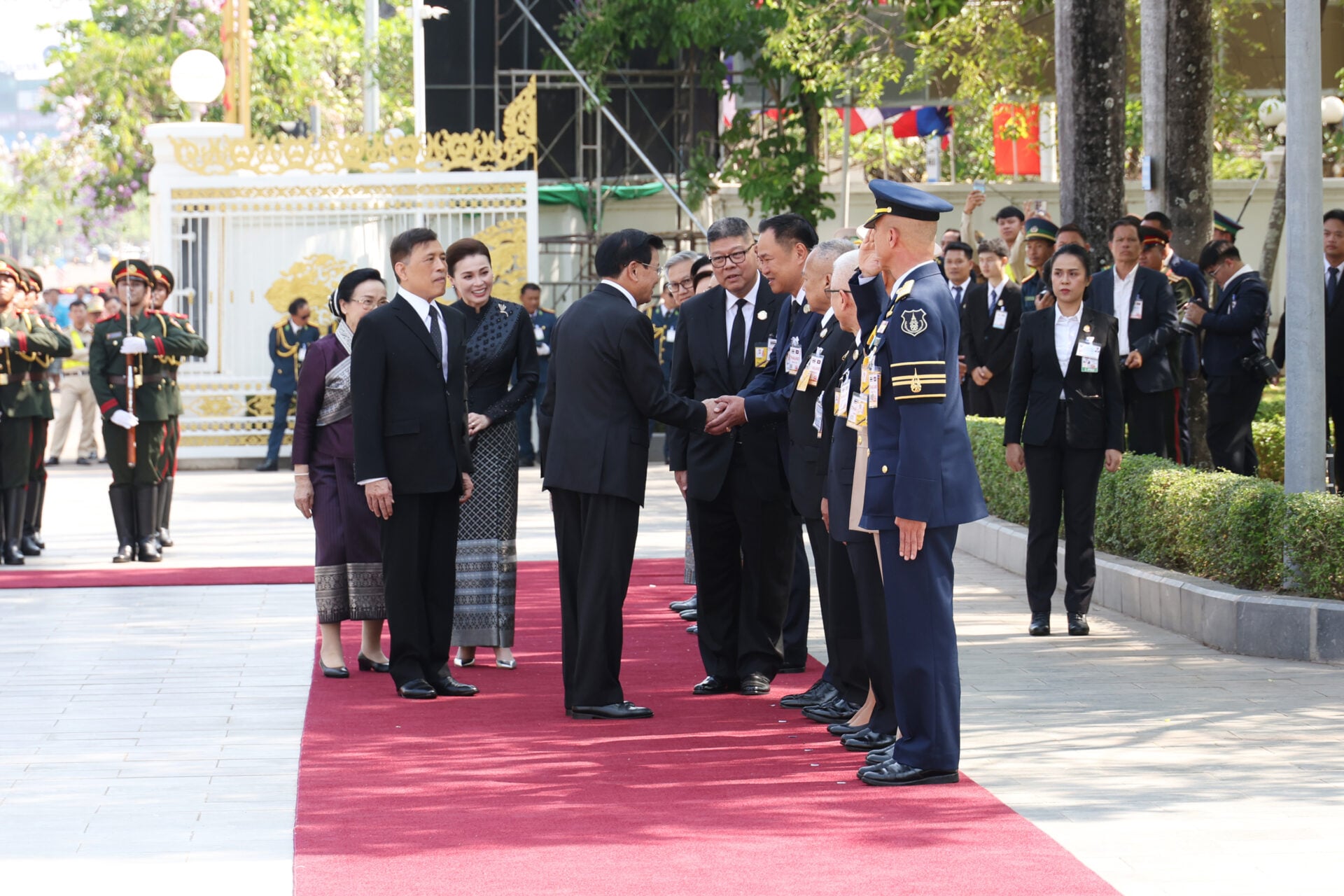 ในหลวง - พระราชินี ทรงร่วมพิธีรับเสด็จฯ ในโอกาสเยือนลาวอย่างเป็นทางการ ทอดพระเนตรตำหนักผ้าไหมลาวโบราณ