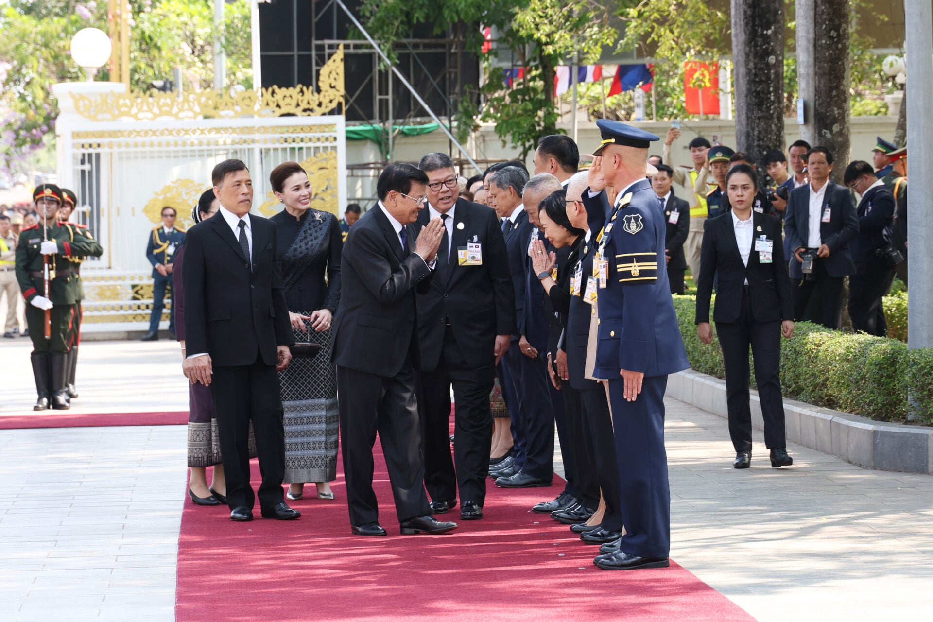 17 มีนาคม 2569 - เวลา 10.07 น.(เวลาท้องถิ่น) พระบาทสมเด็จพระเจ้าอยู่หัว และสมเด็จพระนางเจ้า ฯ พระบรมราชินี เสด็จพระราชดำเนินโดยรถยนต์พระที่นั่ง จากโรงแรมคราวน์พลาซ่า เวียงจันทน์ ซึ่งเป็นเป็นโรงแรมที่ประทับ ไปยังหอคำ (ทำเนียบประธานประเทศ) เมื่อเสด็จพระราชดำเนินถึง นายทองลุน ลีสุลิด ประธานประเทศแห่งสาธารณรัฐประชาธิปไตยประชาชนลาว และนางนาลี สีสุลิด ภริยา เฝ้าทูลละอองธุลีพระบาทรับเสด็จ