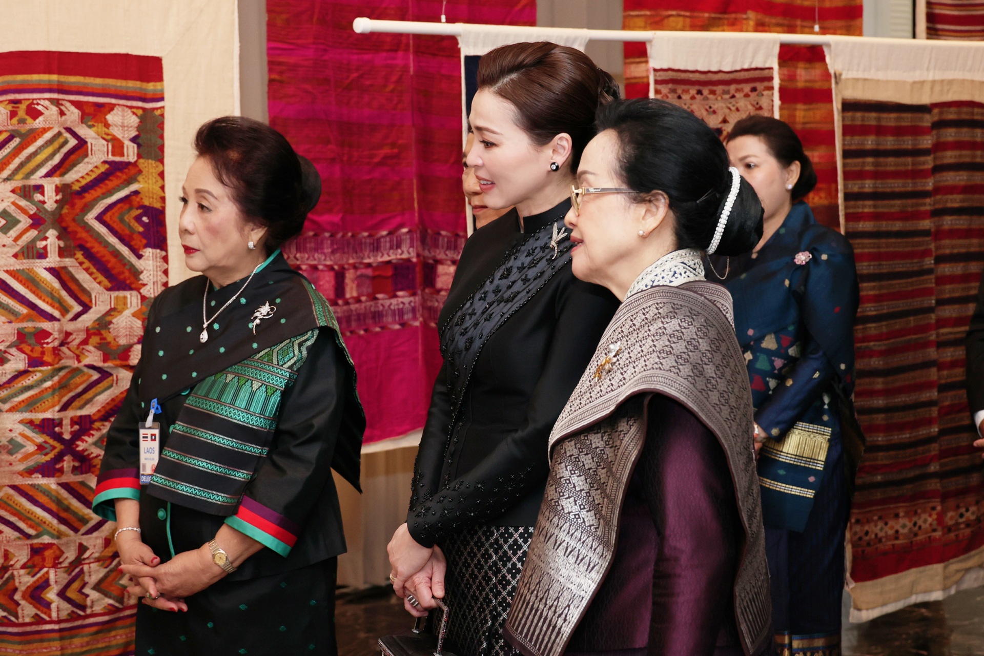 เวลา 11.03 น. (เวลาท้องถิ่น) เสด็จพระราชดำเนินถึงตำหนักผ้าไหมลาวโบราณ พระราชทานพระบรมราชวโรกาสให้ นางสุวิตา ปะเสิด ประธานคณะผู้ก่อตั้งตำหนักผ้าไหมลาวโบราณ และนางจันเทา ปะทำมะวง ประธานกิตติมศักดิ์สมาคมหัตถกรรมลาว เฝ้าทูลละอองธุลีพระบาท ทูลเกล้าทูลกระหม่อมถวายช่อดอกไม้ แด่ พระบาทสมเด็จพระเจ้าอยู่หัว และสมเด็จพระนางเจ้า ฯ พระบรมราชินี และกราบบังคมทูลความเป็นมาของตำหนักผ้าไหมลาวโบราณ เสร็จแล้วทอดพระเนตรการจัดแสดงผ้าไหมลาวโบราณประเภทต่าง ๆ และผ้าพื้นเมืองของกลุ่มชาติพันธุ์ต่าง ๆ กับทอดพระเนตรการจัดแสดงรางวัลพระราชทานจากสมเด็จพระนางเจ้าสิริกิติ์ พระบรมราชินีนาถ พระบรมราชชนนีพันปีหลวง และการสาธิตงานหัตถกรรม การจัดแสดงผลิตภัณฑ์หัตถกรรมลาวแบบประยุกต์และร้านจำหน่ายผลิตภัณฑ์