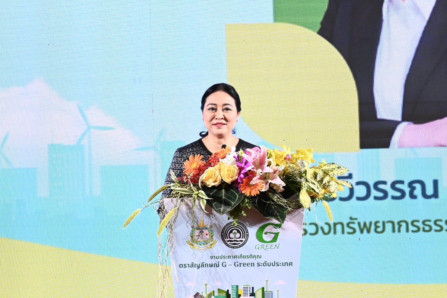ดร.รวีวรรณ ปลัดกระทรวงฯ กล่าวว่า นายสุชาติ ชมกลิ่น รองนายกรัฐมนตรีและรัฐมนตรีว่าการกระทรวงทรัพยากรธรรมชาติและสิ่งแวดล้อม ให้ความสำคัญและห่วงใยด้านสิ่งแวดล้อม โดยมุ่งสนับสนุนและผลักดันการดำเนินงานรางวัล G-GREEN ให้เป็นกลไกสำคัญในการยกระดับมาตรฐานสถานประกอบการ สำนักงาน และอุทยานแห่งชาติ ให้ดำเนินงานอย่างเป็นมิตรกับสิ่งแวดล้อม ทั้งนี้ กรมการเปลี่ยนแปลงสภาพภูมิอากาศและสิ่งแวดล้อม ได้ขับเคลื่อนโครงการส่งเสริมการผลิต การบริการ และการบริโภคที่เป็นมิตรกับสิ่งแวดล้อมอย่างต่อเนื่อง เพื่อสร้างความตระหนักรู้ในการใช้ทรัพยากรและพลังงานอย่างคุ้มค่า เพิ่มประสิทธิภาพการจัดการสิ่งแวดล้อม ควบคู่กับการจัดการของเสียและมลพิษ ตลอดจนสนับสนุนการขับเคลื่อนประเทศไทยสู่เศรษฐกิจและสังคมคาร์บอนต่ำ ลดผลกระทบจากการเปลี่ยนแปลงสภาพภูมิอากาศ