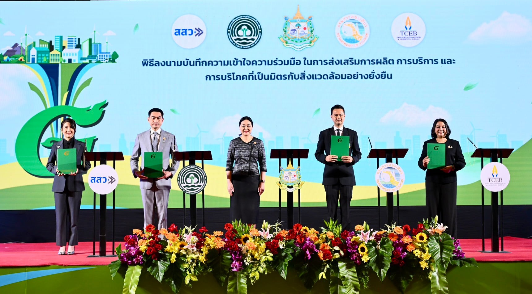 นอกจากนี้ ภายในงานยังมีพิธีลงนามบันทึกความเข้าใจความร่วมมือ (MOU) ระหว่างกรมการเปลี่ยนแปลงสภาพภูมิอากาศและสิ่งแวดล้อม กับ 3 หน่วยงาน ได้แก่ การท่องเที่ยวแห่งประเทศไทย สำนักงานส่งเสริมการจัดประชุมและนิทรรศการ (องค์การมหาชน) และสำนักงานส่งเสริมวิสาหกิจขนาดกลางและขนาดย่อม เพื่อยกระดับมาตรฐานการท่องเที่ยวและการบริการที่เป็นมิตรกับสิ่งแวดล้อม ควบคู่กับการส่งเสริมศักยภาพผู้ประกอบการ SMEs ให้สามารถดำเนินธุรกิจได้อย่างยั่งยืนภายใต้บริบทการเปลี่ยนแปลงสภาพภูมิอากาศ