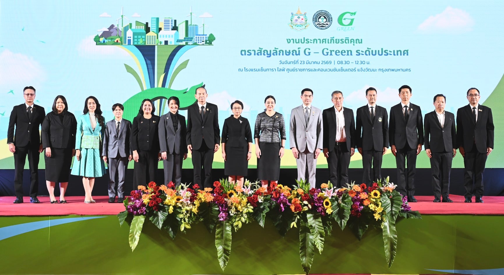 วันนี้ (23 มีนาคม 2569) เวลา 09.30 น. ดร.รวีวรรณ ภูริเดช ปลัดกระทรวงทรัพยากรธรรมชาติและสิ่งแวดล้อม เป็นประธานในพิธีเปิดงานและมอบรางวัลตราสัญลักษณ์ G-GREEN ระดับประเทศ ณ โรงแรมเซ็นทารา ไลฟ์ ศูนย์ราชการและคอนเวนชันเซ็นเตอร์ แจ้งวัฒนะ กรุงเทพมหานคร โดยมีคณะผู้บริหาร ผู้แทนจากหน่วยงานภาครัฐและเอกชนเข้าร่วมงาน