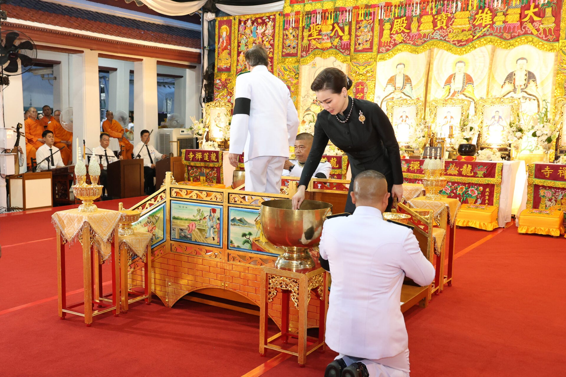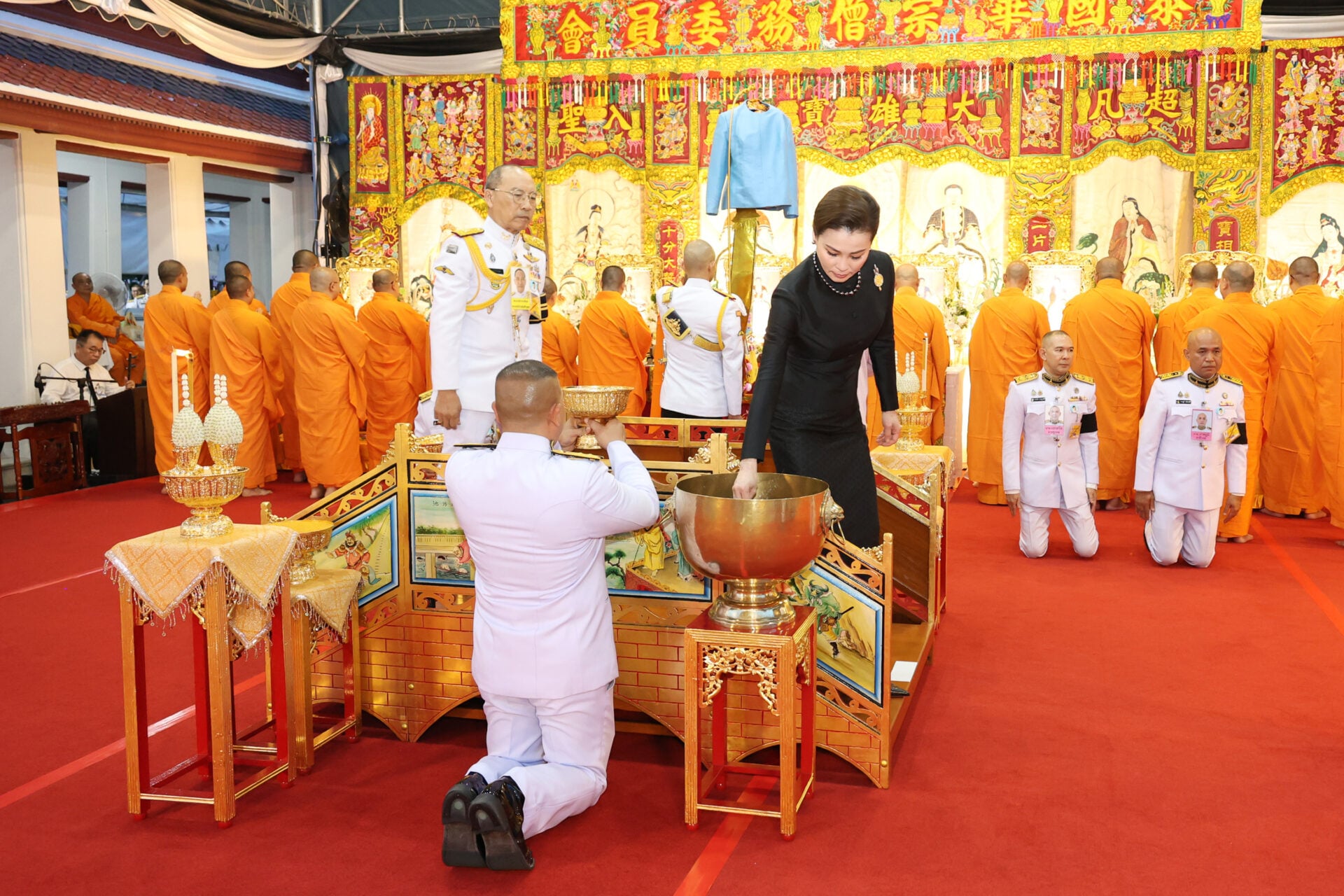 สำหรับบรรพชิตคณะจีนนิกายประกอบพิธีบำเพ็ญกุศล (กงเต็ก) ร่วมน้อมอุทิศถวายเป็นพระราชกุศล เดินทางมาจากทั่วประเทศ 17 วัด จำนวน 120 รูป อาทิ วัดมังกรกมลาวาส กรุงเทพฯ , วัดบรมราชากาญจนาภิเษกอนุสรณ์ฯ จ.นนทบุรี, วัดโพธิทัตตาราม ศรีราชา จ.ชลบุรี, วัดหมื่นพุทธเมตตาคุณาราม จ.เชียงราย เป็นต้น