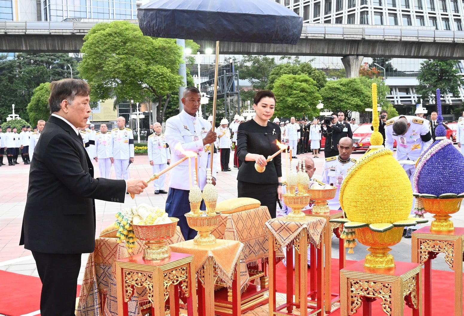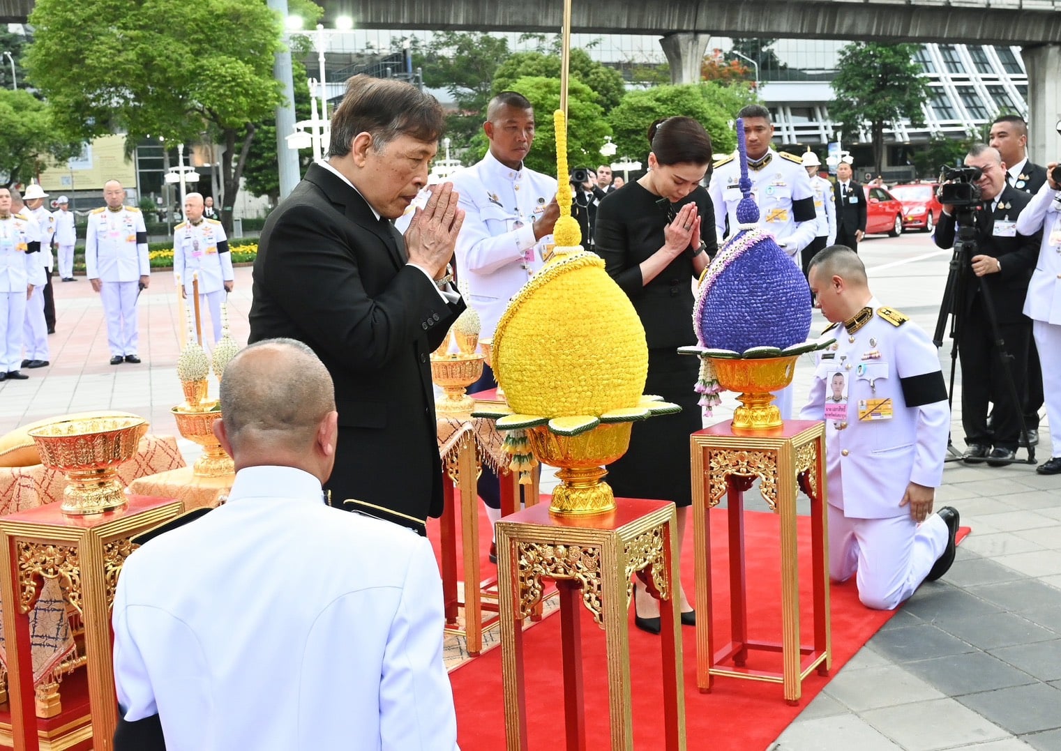 ในหลวง-พระราชินี ทรงวางพานพุ่มดอกไม้ ณ พระบรมราชานุสรณ์สมเด็จพระพุทธยอดฟ้าจุฬาโลกมหาราช
