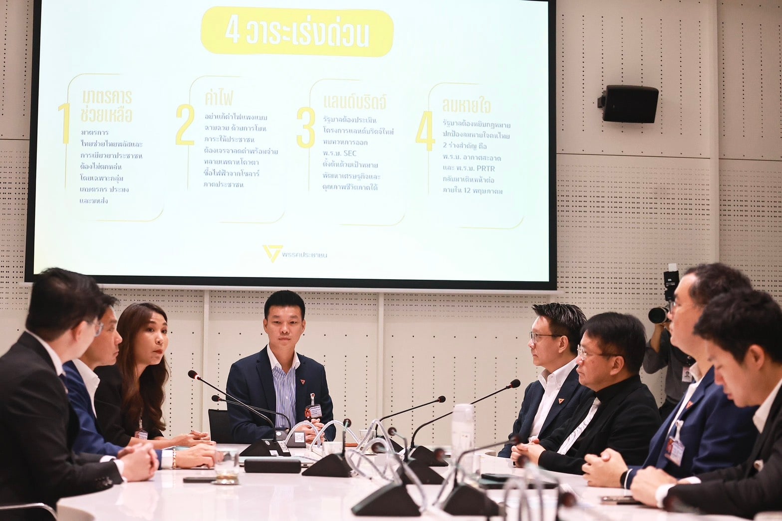ทั้งนี้ ผลลัพธ์การประชุมวันนี้ชั่วโมงเศษๆ มีการพูดคุย 4 เรื่องด่วน ที่จะติดตามใกล้ชิดในช่วง 1 เดือน จากนี้ 1.มาตรการช่วยเหลือประชาชน เช่น ไทยช่วยไทยพลัส 2.โครงการ แลนด์บริดจ์ ซึ่งต้องมีการทบทวน ว่าจะดำเนินการต่ออย่างไร 3.เรื่องค่าไฟ ข้อเสนอของเราที่ดีกว่าในการปรับโครงสร้างพลังงานอย่างไร และ 4 เรื่องลมหายใจ รัฐบาลต้องเสนอกฎหมายปกป้องลมหายใจของคนไทย 2 ร่างสำคัญคือพ.ร.บ.อากาศสะอาด และพ.ร.บ.PRTR กลับมาเดือนหน้าต่อภายใน 12 พ.ค.