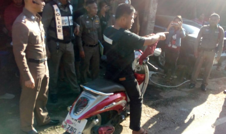 จากการสอบสวนนางสีนวล นับแสน อายุ 65 ปี อยู่บ้านเลขที่ 6/5 หมู่ 2 ต.โคกหล่อ อ.เมือง จ.ตรัง ผู้เห็นเหตุการณ์ และเป็นญาติกับเจ้าของร้านค้าที่เกิดเหตุ เล่าว่า ก่อนเกิดเหตุตนเองยืนอยู่ภายในสนามหญ้า คนละฝั่งถนนกับจุดเกิดเหตุ ได้มีผู้ชาย 1 คน ขี่รถจักรยานยนต์โดยมีผู้ตายนั่งซ้อนท้ายมา ก่อนจะมาส่งให้ผู้ตายลงหน้าร้านค้า แล้วขี่รถออกไป กระทั่งมีผู้ชายอีก 1 คน ซึ่งเป็นคนร้าย ขี่รถจักรยานยนต์ตามมา แล้วเกิดมีปากเสียงกับผู้ตายอย่างรุนแรง มีการทำร้ายร่างกายด้วยการตบ ตีและเตะ จนผู้ตายล้มลง ตนเองได้วิ่งเข้าไปเพื่อห้ามปราม แต่คนร้ายตะโกนขู่ว่าเป็นเรื่องของผัวเมีย ถ้าใครแจ้งตำรวจจะแทงให้ตาย ด้วยความตกใจ ตนจึงวิ่งหนี ขณะที่ผู้ตายได้วิ่งไปที่บริเวณโต๊ะหน้าร้าน จนมุมติดอยู่กับเสาปูน คนร้ายจึงชักอาวุธมีดกระหน่ำแทงไม่ยั้ง ก่อนที่จะขี่รถจักรยานยนต์หลบหนีไป ส่วนผู้ตายยังมีสติ ได้วิ่งเข้าไปนั่งเก้าอี้ภายในร้าน ก่อนจะเสียชีวิตในที่สุด